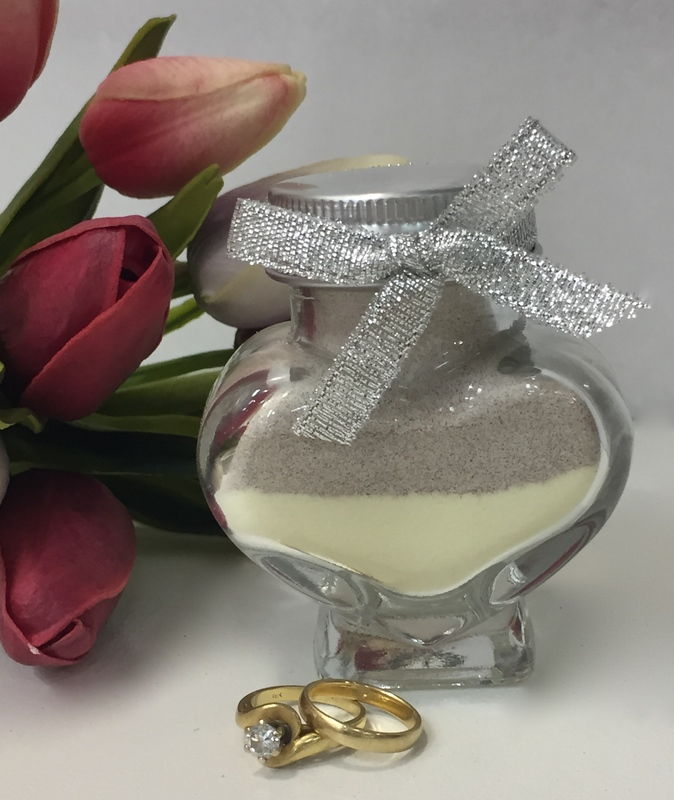 These unique Wedding Bomboniere/ favours are a single serve Hot drinking Cocoa or Chai Latte in a romantic heart shaped reusable gift jar.