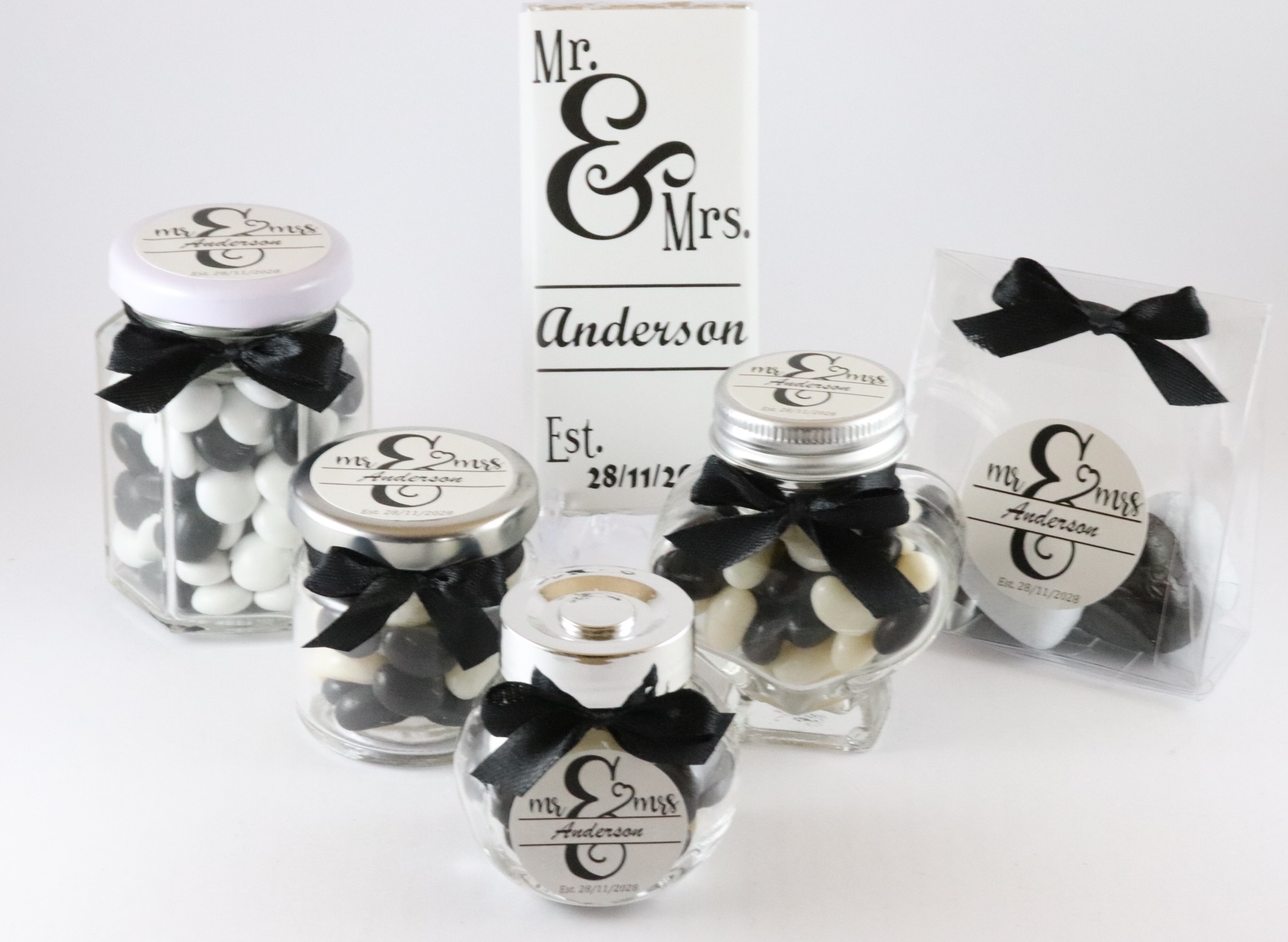 Universal party has got you covered! We offer personalised customised filled candy jar, chocolate box, chocolate bars bombonieres party favours for all special occasions.