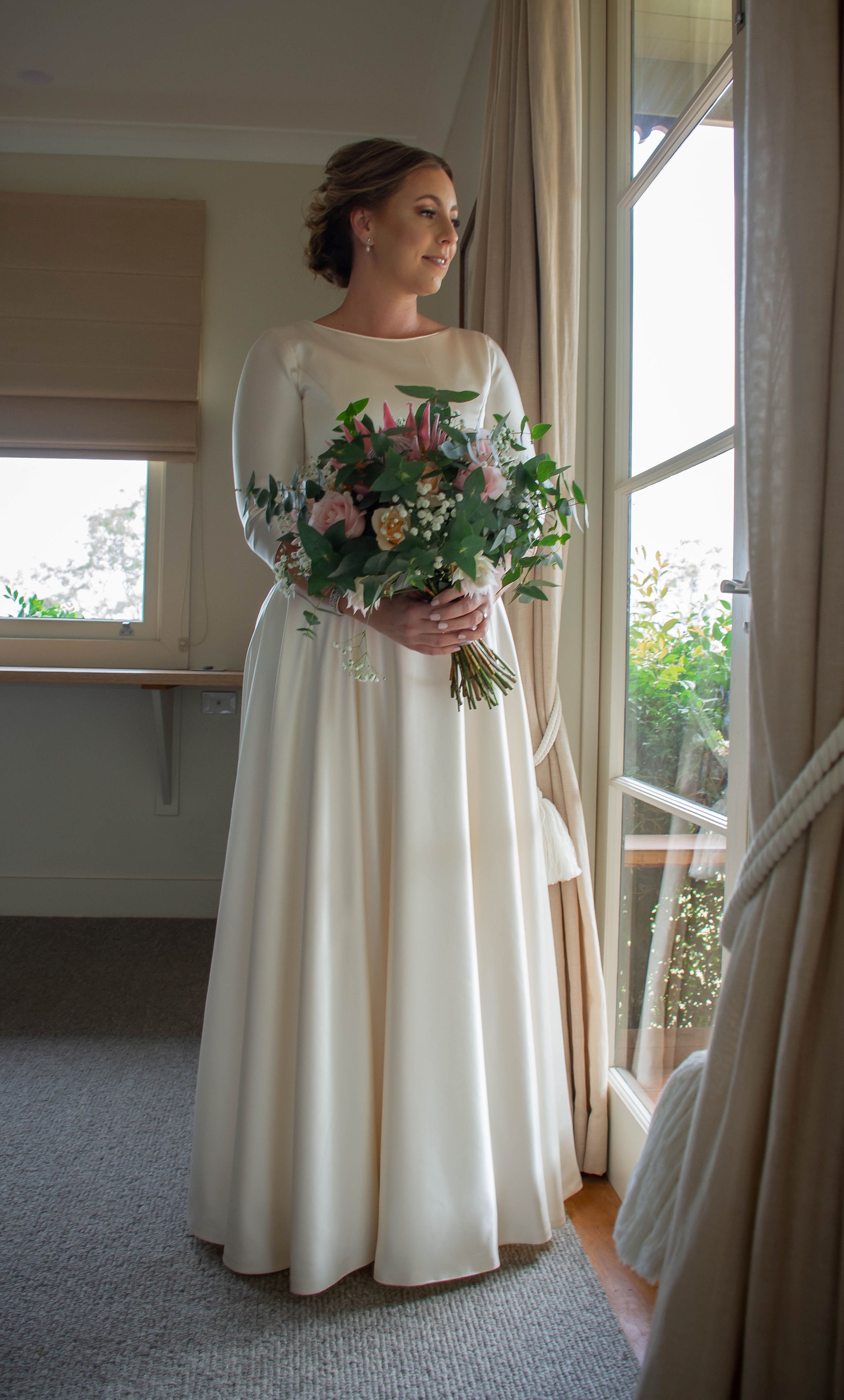 Having a gown made to measure means you can have a unique gown which totally reflects your style, and has all the details you are inspired by, but haven't been able to find in a ready to wear dress. Susan spends a lot of time working through a bride's ideas, and melds them with her own, to ensure the finished gown will make the bride look exactly as she had imagined.