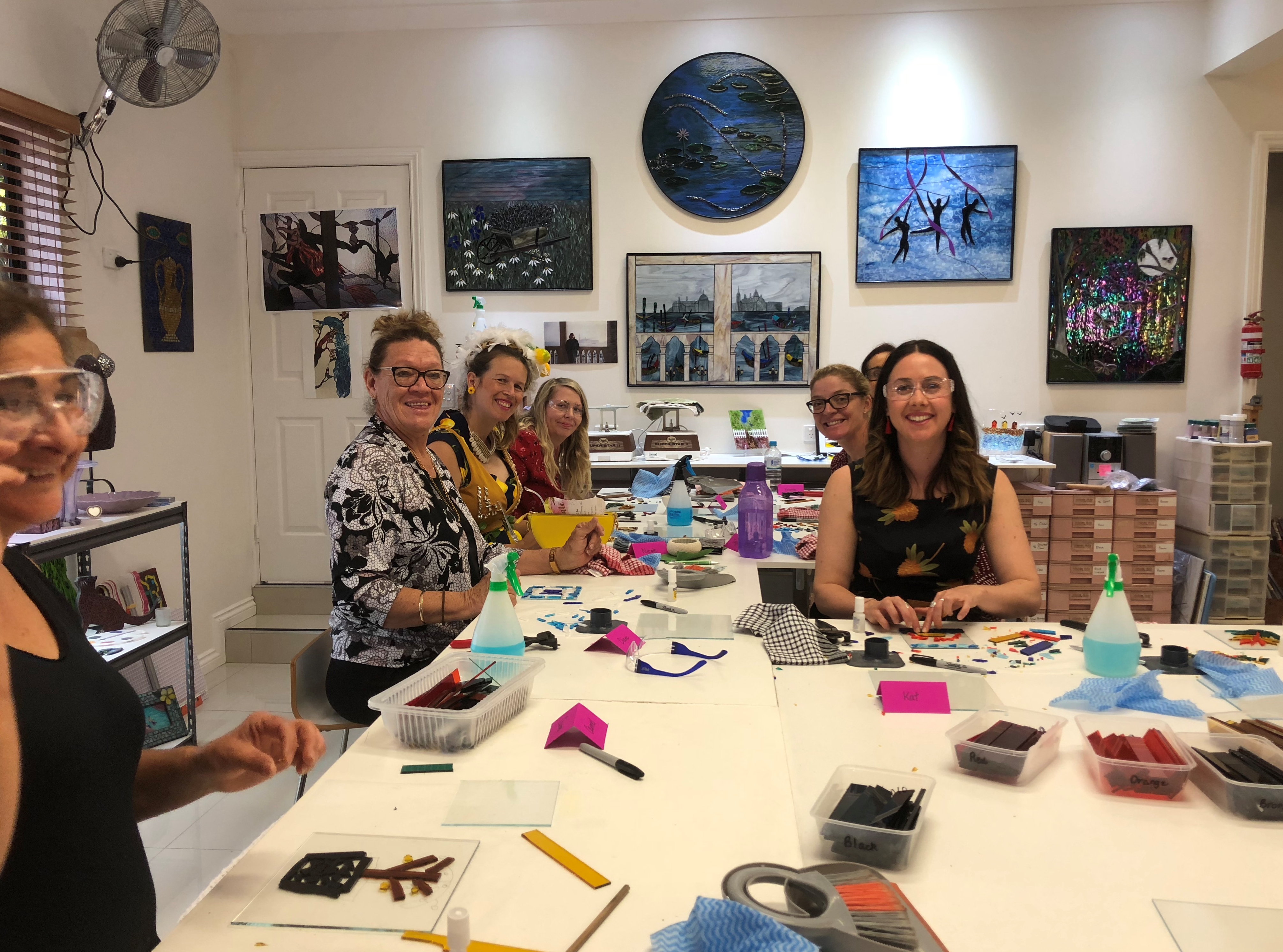 Spend 3 1/2 hours in a professional glass studio and with absolutely no experience create some stunning pieces. It's a great way to celebrate a special event. Make a large piece, a small piece and as many pieces of jewelry or suncatchers as you'd like. It's a time to have fun and relax with friends and family. Enjoy each others company while letting loose your inner creative being.............and we all have one! It also includes some yummy food so feel free to bring bubbles and let's get started on your hens party!!!!!