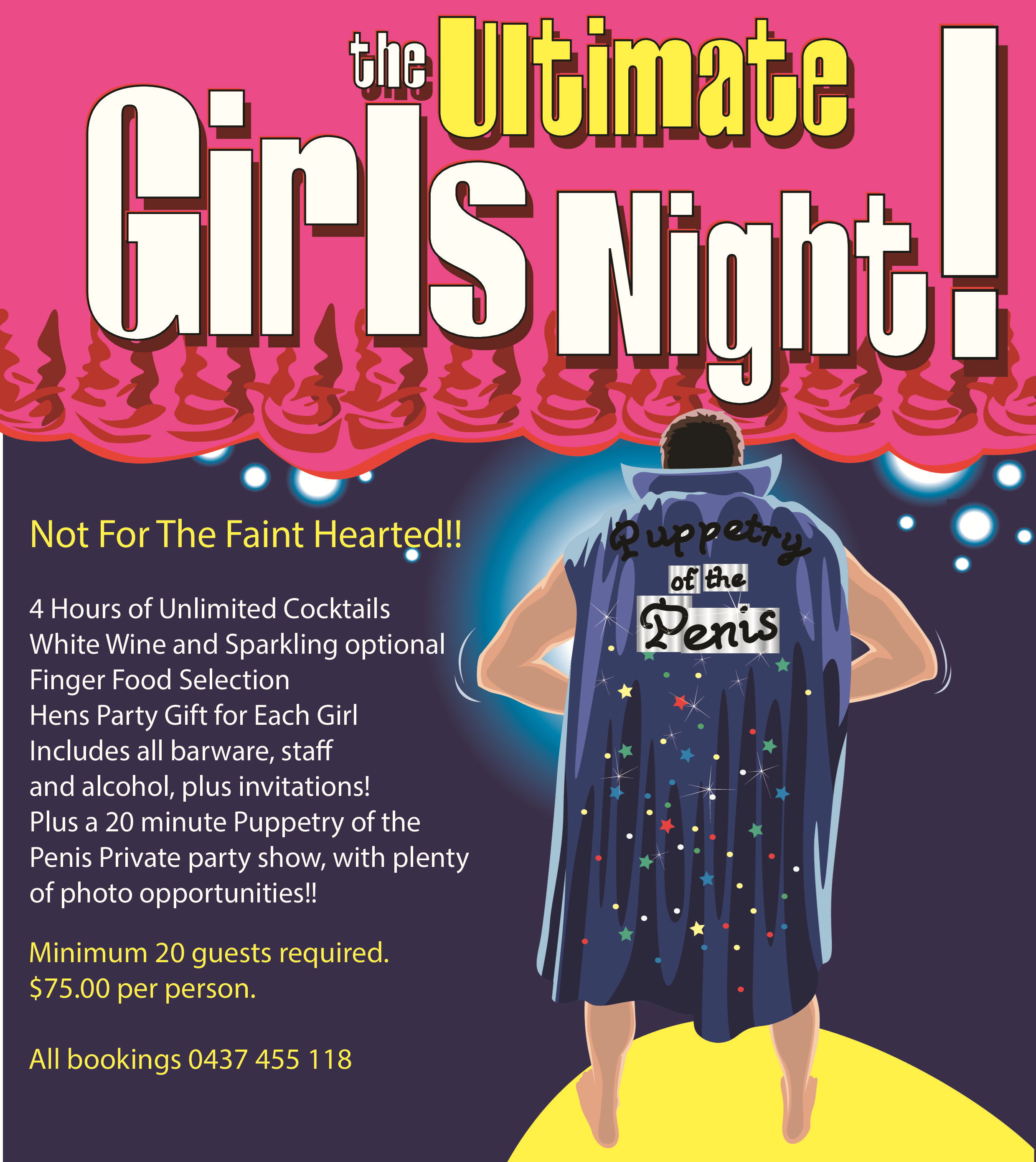 We have packages that include burlesque, Puppetry of the Penis, Pamper Makeup packages, male revue shows and more!!! We are Melbourne's only fully licensed hens night party supplier.
