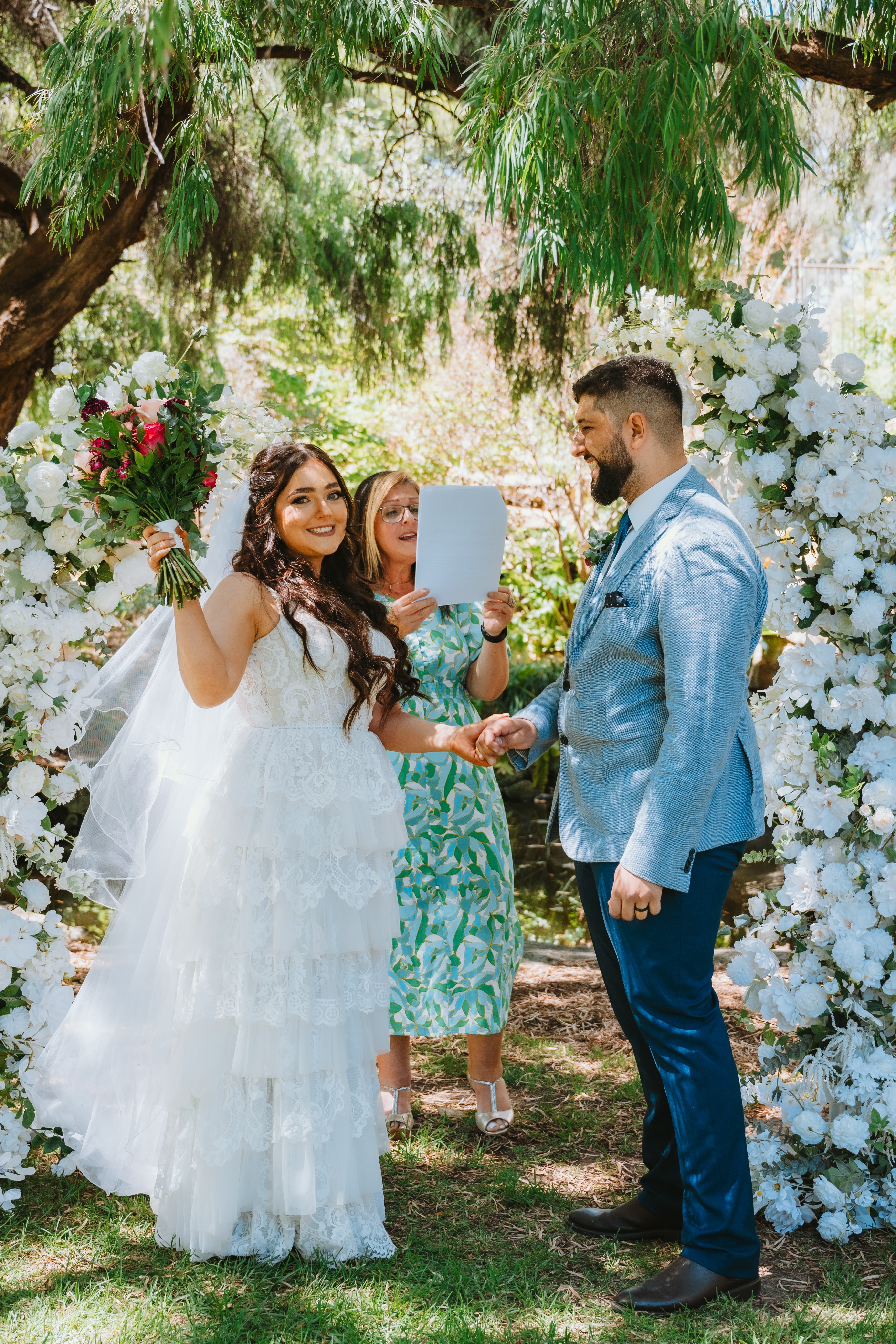 "We were very happy with Gina’s services as our celebrant. She took the time to meet with us in advance of the wedding and ensured that we did everything we needed too and guided us from start to finish. She was easy to contact when we had questions and listened to what we wanted and worked her magic to make it work. Thank you, Gina, for marrying us and making our wedding ceremony exactly what we wanted!"
