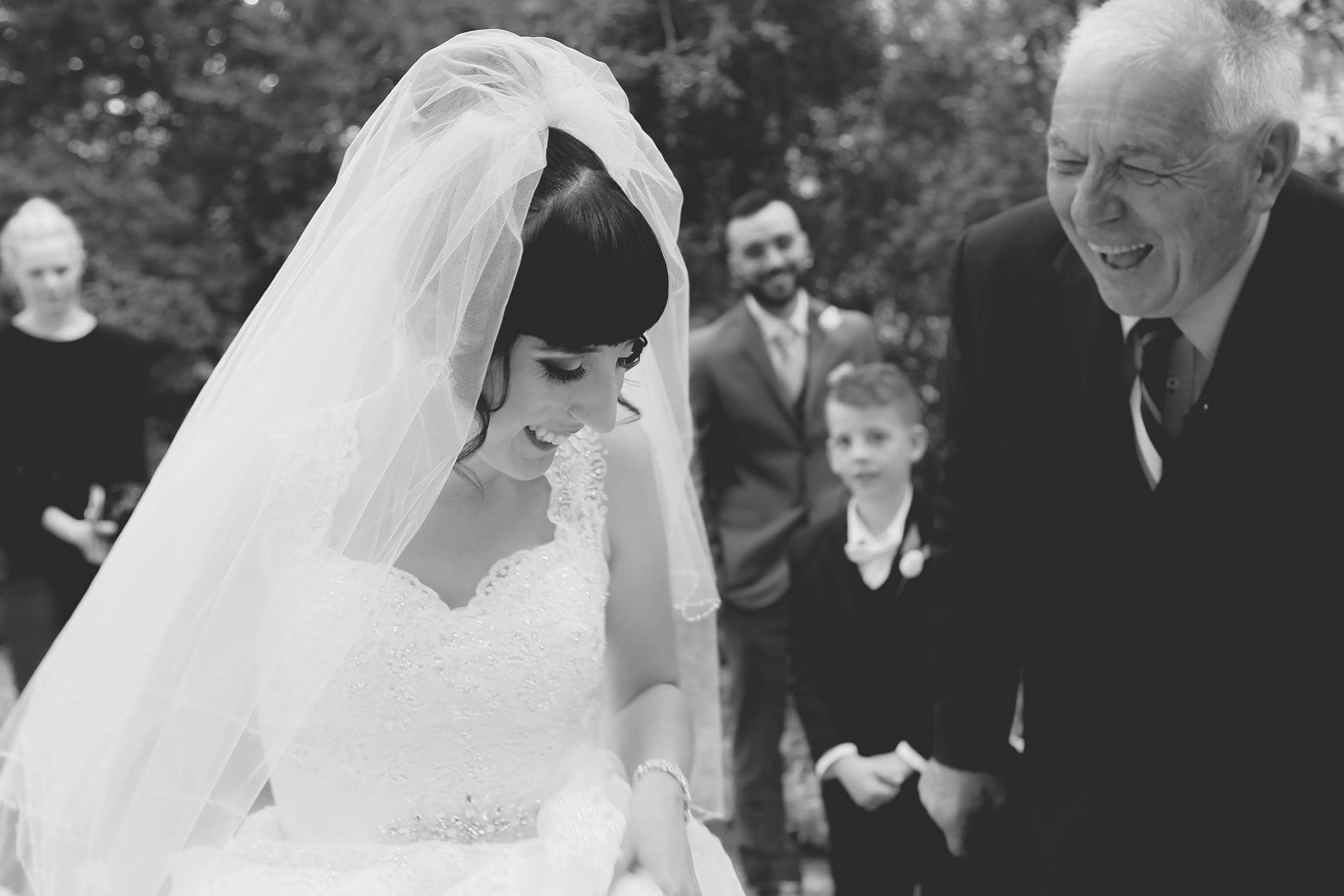 Normally a bride will stand on the left hand side of the person walking with them down the aisle.