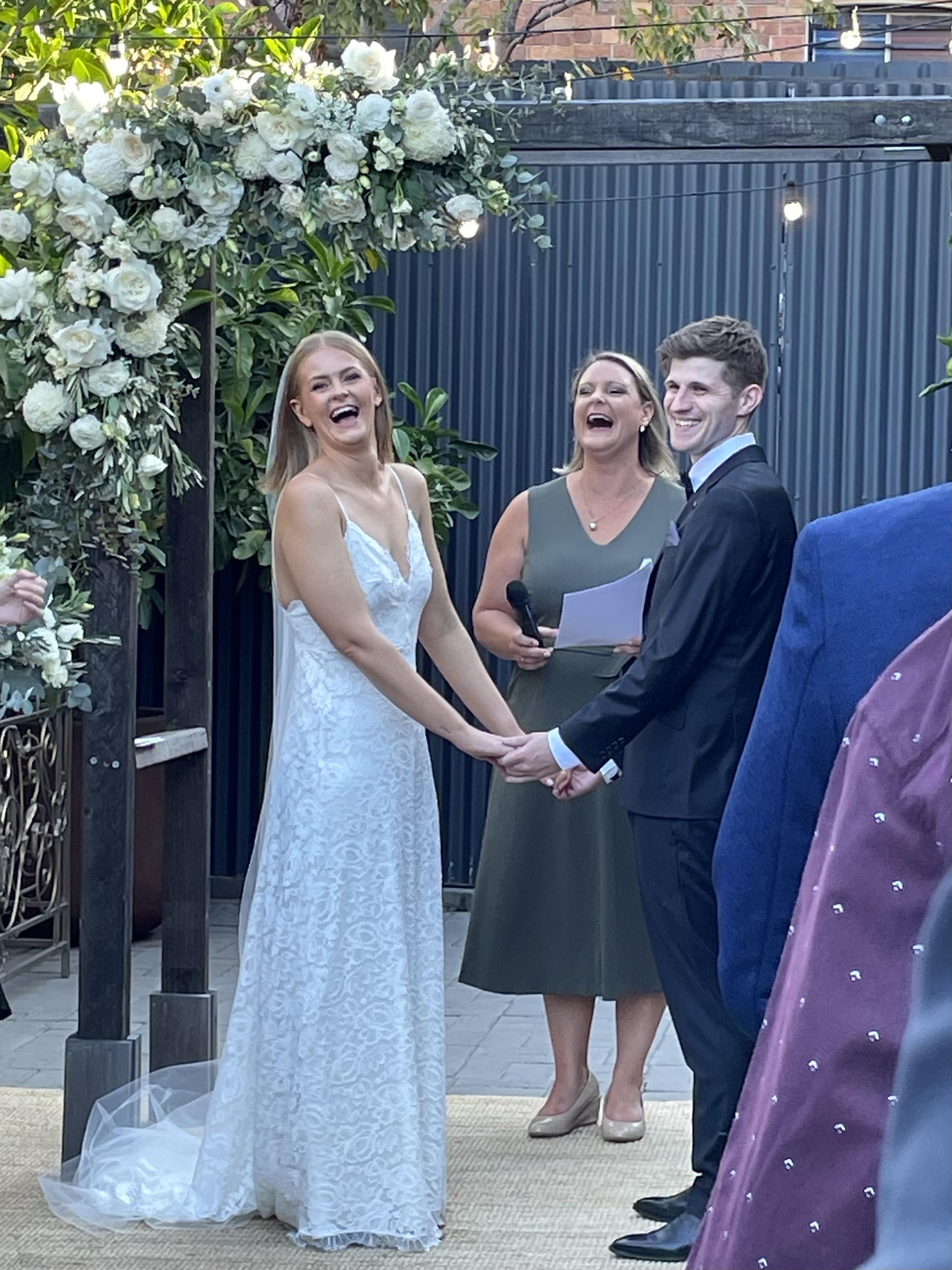 "From start to finish dealing with Angela was a breeze. She provided support throughout the whole process and was very accommodating. She made everything flow seamlessly on the day, and we could not have asked for a more perfect ceremony. It captured our relationship perfectly! If you are looking for a celebrant that is easy-going, fun and professional, Angela is your lady!" – Mr & Mrs Murdoch, May 2022.