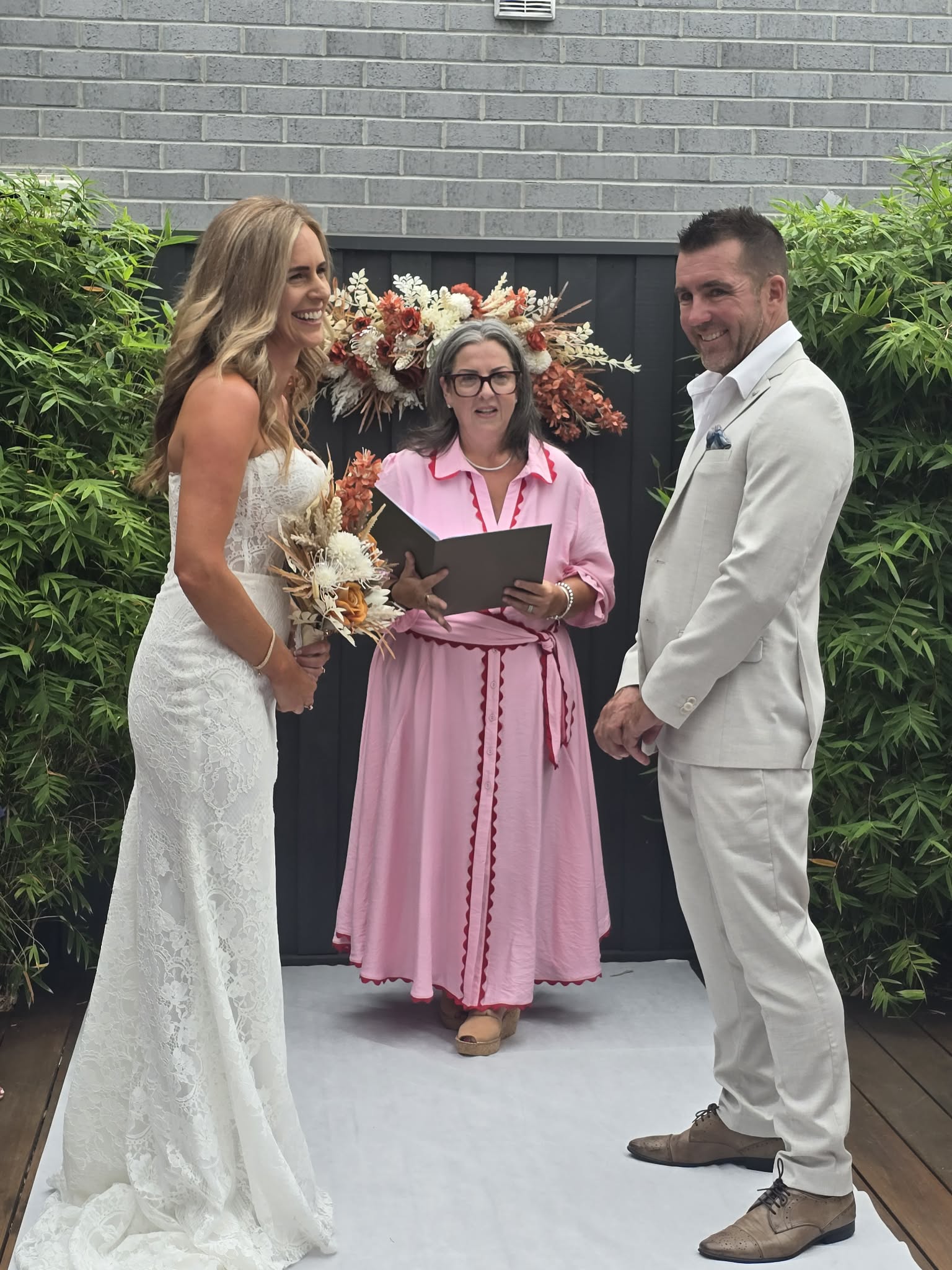 I recommend booking at least 12 months in advance, especially for weekends or seasonal dates. Legally, your Notice of Intended Marriage (NOIM) must be lodged at least 1 month before the ceremony. Booking early ensures your preferred date is available and allows plenty of time to personalise your ceremony and complete all legal requirements.