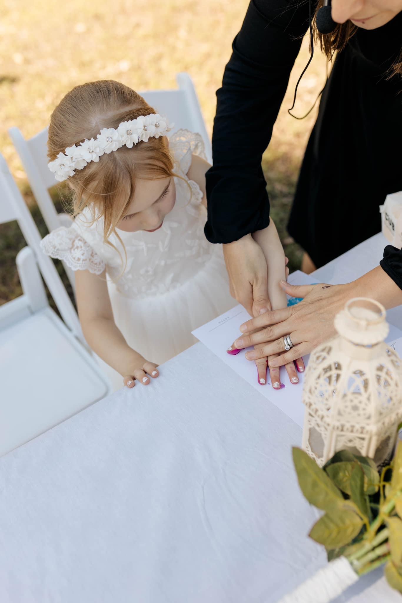 "Karina was incredibly organised and kept us on schedule leading up to the big day. She provided us with lots of options when choosing the elements of our ceremony, and we really appreciated her help in putting our vows together while still keeping them personal to us. What we loved most was her ability to include our daughter in the ceremony in a way that felt natural and meaningful." — Shani.