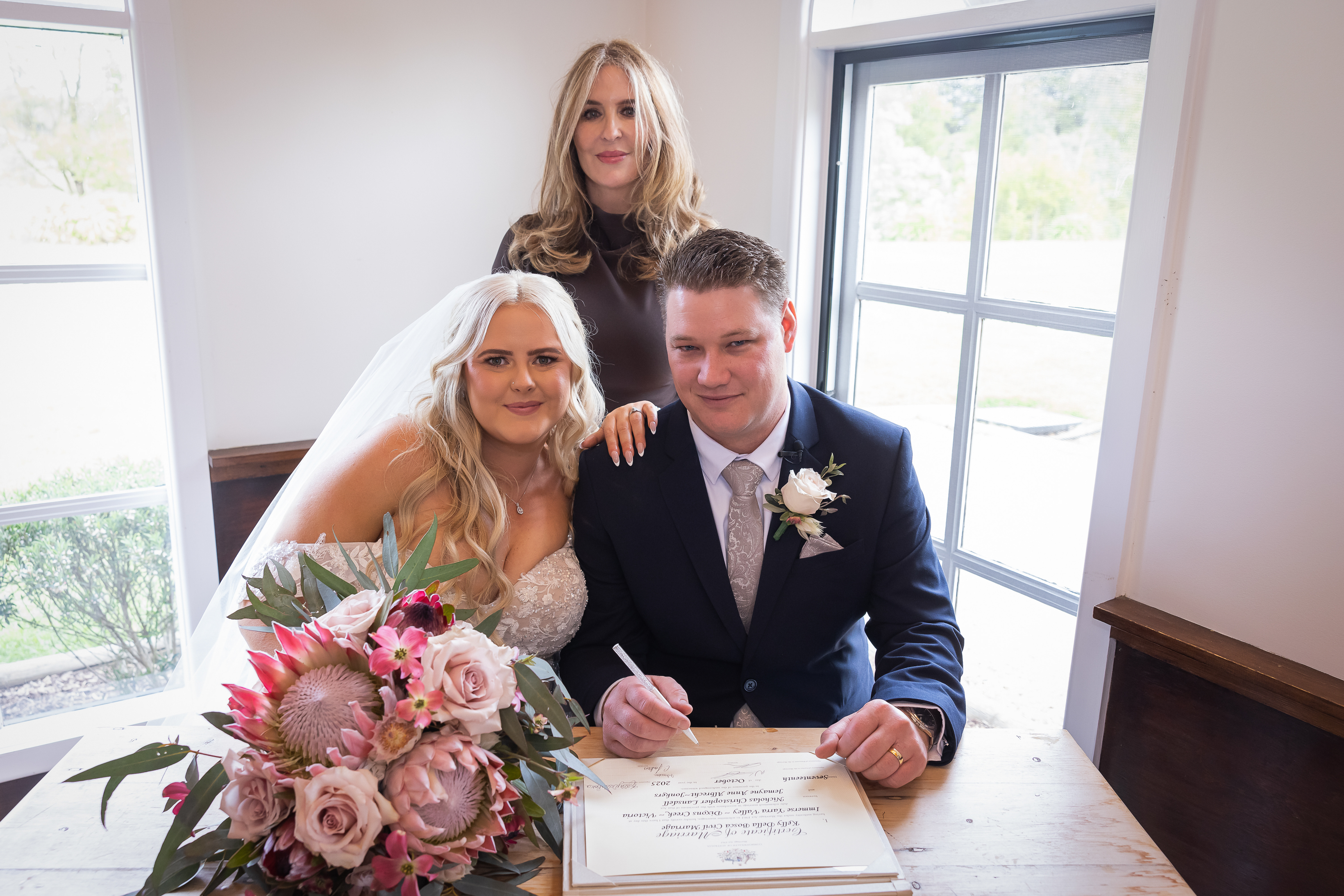 The marriage certificate you receive at the end of the ceremony is commemorative only, it will not support your application to change your name. I will lodge the official documentation with the Registry of Births, Deaths and Marriages on your behalf. You should then contact the Registry directly in order to obtain a legally recognized certificate.