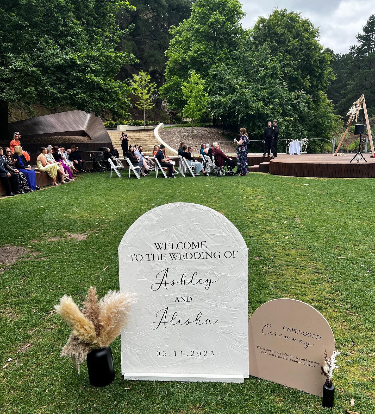 "Leeann was the absolute perfect wedding Celebrant. During the planning phase, she was *so* kind, thorough, patient and accommodating. She made the process easy for us with tons of recommendations for readings, ways for her to say things, etc., while also giving us plenty of opportunities to personalise. She was completely flexible about anything we did/didn't want to say or do. At the wedding, she was poised, articulate and thoughtful. She picked up on our vibe quickly and was laid-back and light-hearted, just like we wanted our ceremony to be. We laughed and cried; it was truly the perfect moment. We absolutely, wholeheartedly recommend her!!!" — Emily + Nathan.