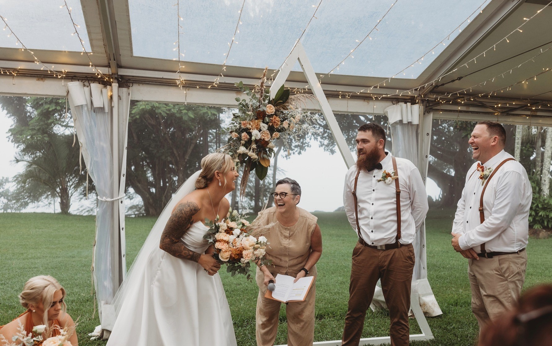 Michelle Stewart Celebrant creates wedding ceremonies that are grounded, sincere, and full of life. Known for her warm presence and ability to put people at ease, Michelle helps brides and grooms navigate their vows with a sense of joy and poise.