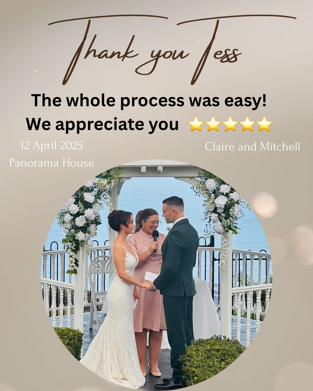 Tess prides herself on offering bespoke wedding ceremonies tailored to each couple's unique love story. Whether it's a cosy elopement, a country celebration in the Southern Highlands, or a beachside wedding in Wollongong or Cronulla, Tess crafts ceremonies that reflect your vision and style. Her background as a nurse means she brings empathy and calmness to every situation and as a qualified make-up artist she brings her eye for beauty and artistic flair to your wedding.