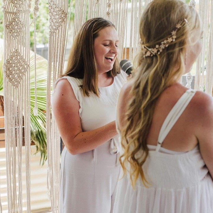 I like to think of my ceremony style as respecting the seriousness and importance of the occasion but also “keeping it real”... You will never hear me begin a ceremony with “we are gathered here today” and I will only ever tell your story the way you want it told. You won’t get any sappy lovey dovey talk from me either like “love is patient, love is kind” or I would probably follow on with “love is slowly losing your mind”.