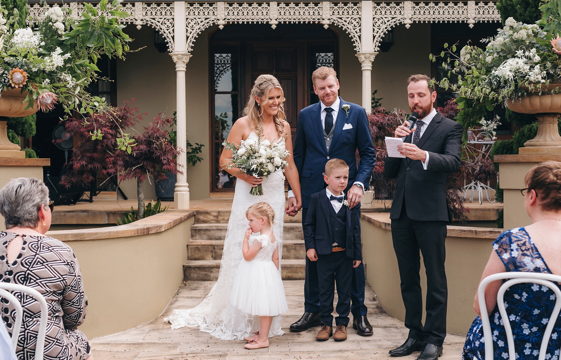 “Tom was the perfect celebrant for us. He was organised and helpful throughout the wedding preparation process. He was a calming influence for us on the day, and he conducted the ceremony in a way that was both thoughtful and professional while also being friendly and fun. We’ve had many compliments from our wedding guests about Tom.” - David C.