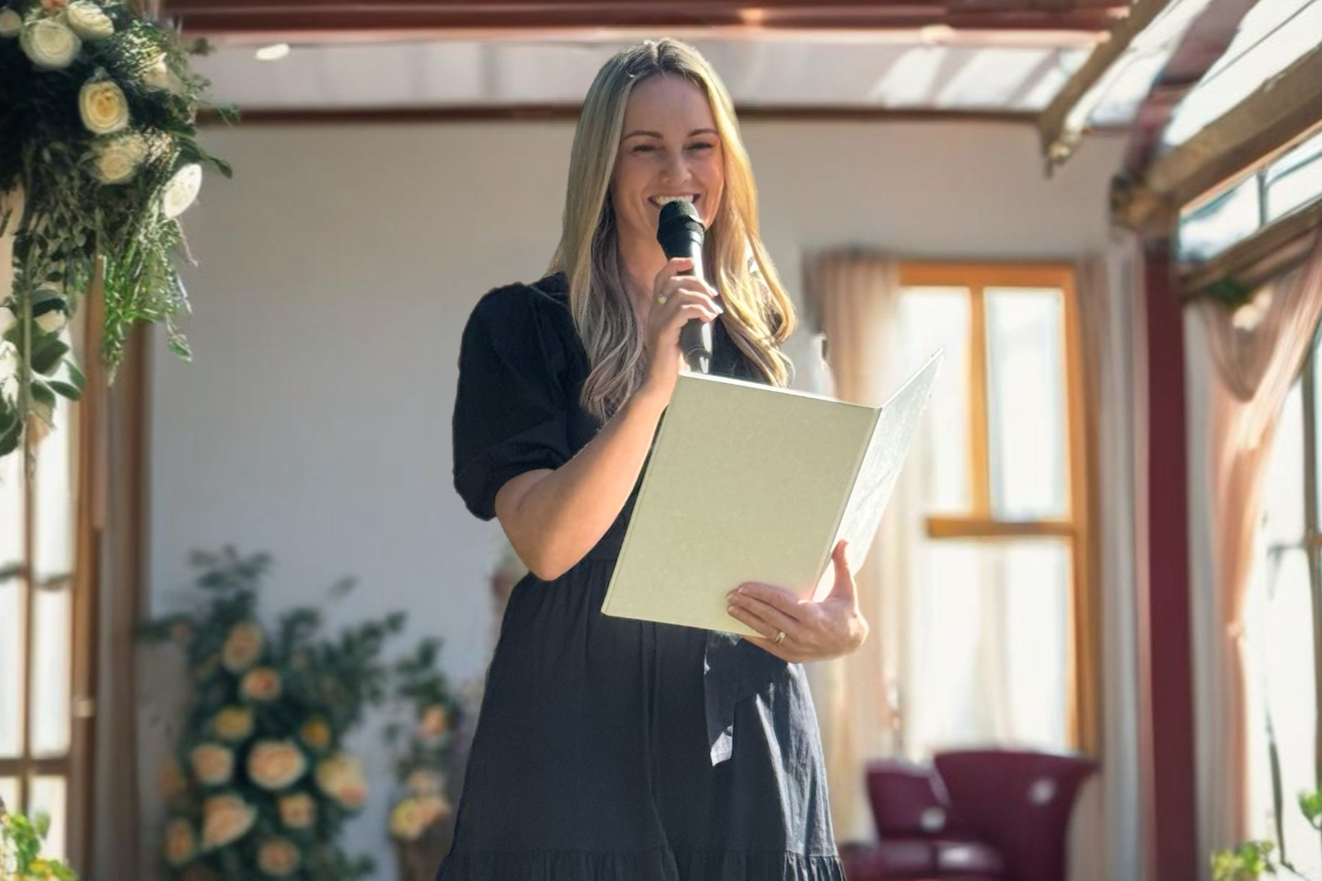 Kathryn’s services as a marriage celebrant focus on creating a ceremony that reflects the couple’s story and connection. Her approach combines warmth with professional experience, ensuring a seamless process from start to finish. Couples love Kathryn’s genuine enthusiasm and her willingness to go above and beyond to ensure everything runs smoothly. She even offers vow-writing assistance so couples can express their feelings in the best way possible. With Kathryn, the details are covered. She provides a high-quality PA system, a signing table and chairs and helps with everything from personal vows to readings.