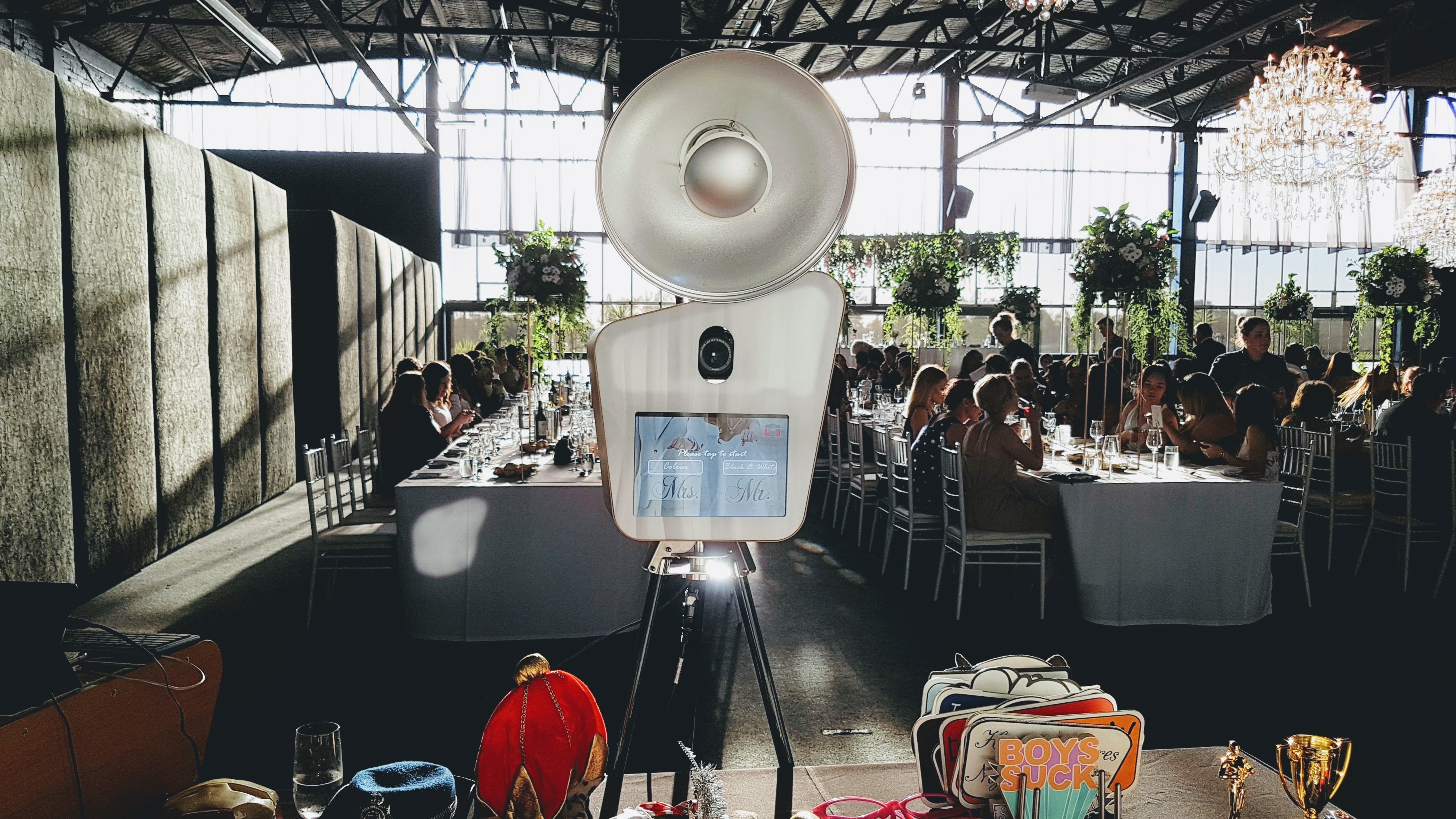 Our photobooth has been designed to be super simple to use - Grab a prop (or two), press start, strike a pose, then wait for your prints to come out within seconds !