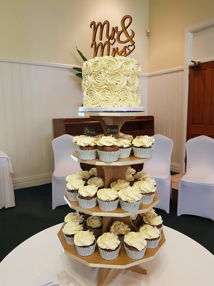 a cupcake for each of their guests allowing the happy couple to keep their cutting cake for their 1st Anniversary!