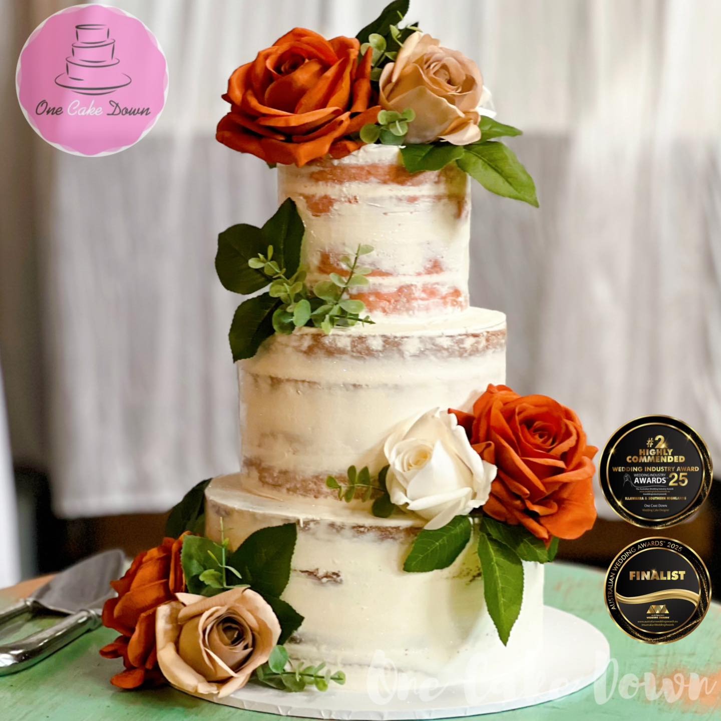 One Cake Down is proud to be a multi-award-winning wedding cake artist, having won the Wedding Industry Awards for the Illawarra in both 2023 and 2024, and receiving a Highly Commended recognition in 2025. We were also honoured to be named among the Top 5 Wedding Cake Designers Australia-wide in 2023 and 2024. In addition, Kylie has been a finalist in the Illawarra Women in Business Awards – Customer Service category, recognising her dedication to delivering exceptional experiences for every client. These achievements reflect our passion for quality, creativity, and genuine care — and we’re so grateful to every couple who’s trusted us to be part of their special day. ?????