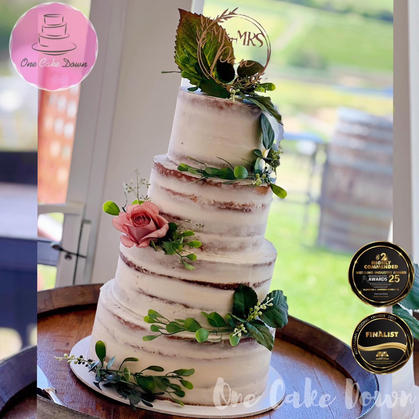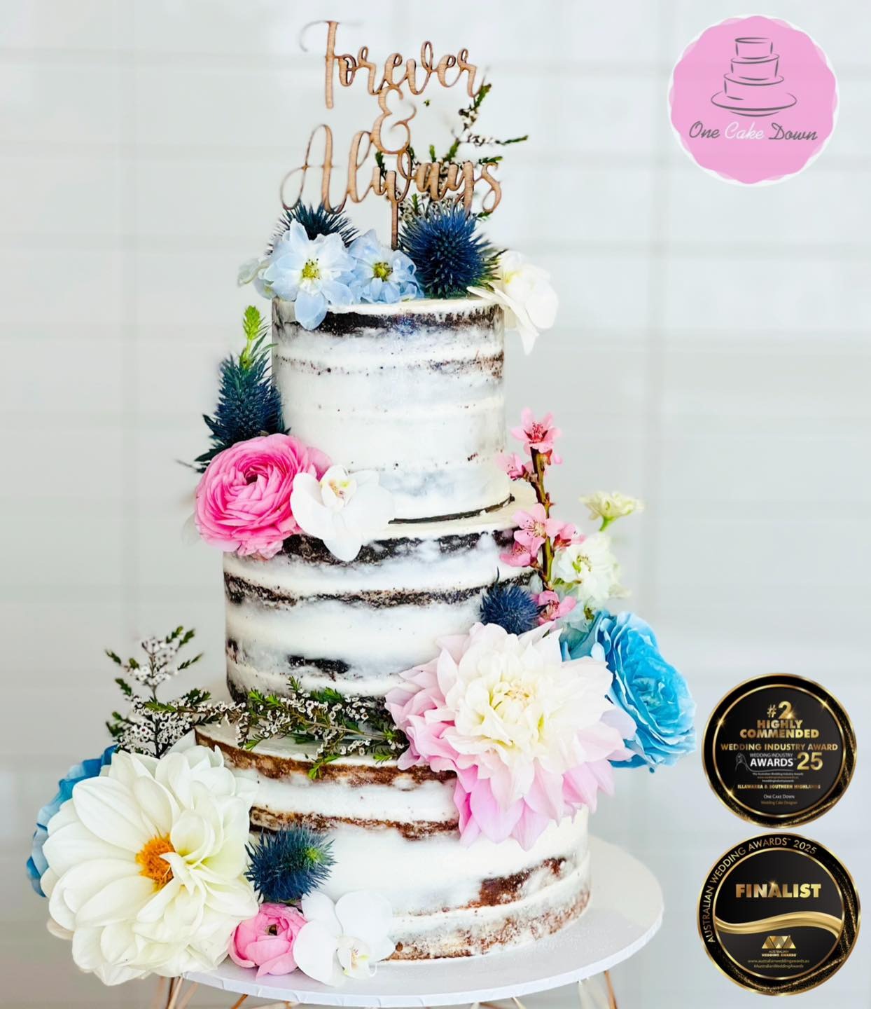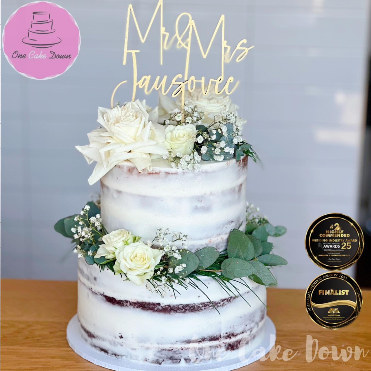 We’re incredibly proud to have been recognised by couples and industry professionals alike! One Cake Down has been named Winner of the Wedding Industry Awards – Illawarra (2023 & 2024), Highly Commended in 2025, and ranked among the Top 5 Wedding Cake Designers in Australia (2023 & 2024). These awards celebrate our dedication to quality, creativity, and outstanding service — but the real reward is seeing our couples light up when they see their cake for the first time! ????