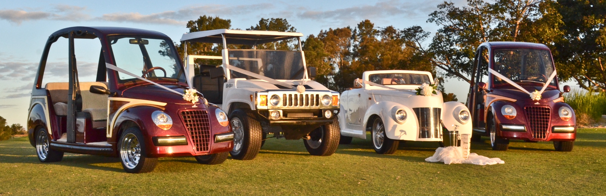 Our packages are custom designed to suit your day and your budget. Some venues have accomodation, so our buggies make great transportation to the Chapel/Ceremony. We also have packages which include the photo tour. Imagine your Bridal Party being driven around the grounds whilst you have your photo's taken. Relax, sit back and be served drinks and nibbles and enjoy the experience.