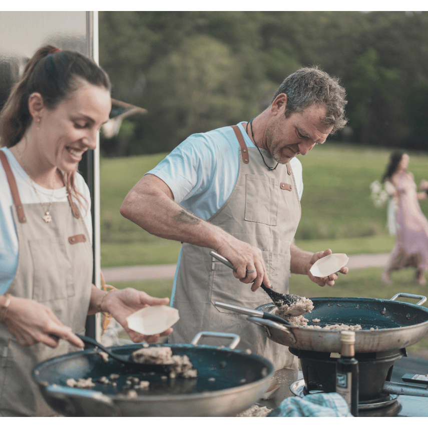 We offer Tasting Boxes—a personalised experience you can enjoy at home! Simply select your preferred menu items online, and we’ll prepare a box for pickup at our depot (1/6 Fortitude Cr, Burleigh Heads). Our tasting boxes include dishes that travel well, so you can savour the flavours, though please note that freshly cooked at your event, they’ll be even better! Available for pickup Wednesday to Saturday. For more details or to place an order, visit our Tasting Boxes page here.