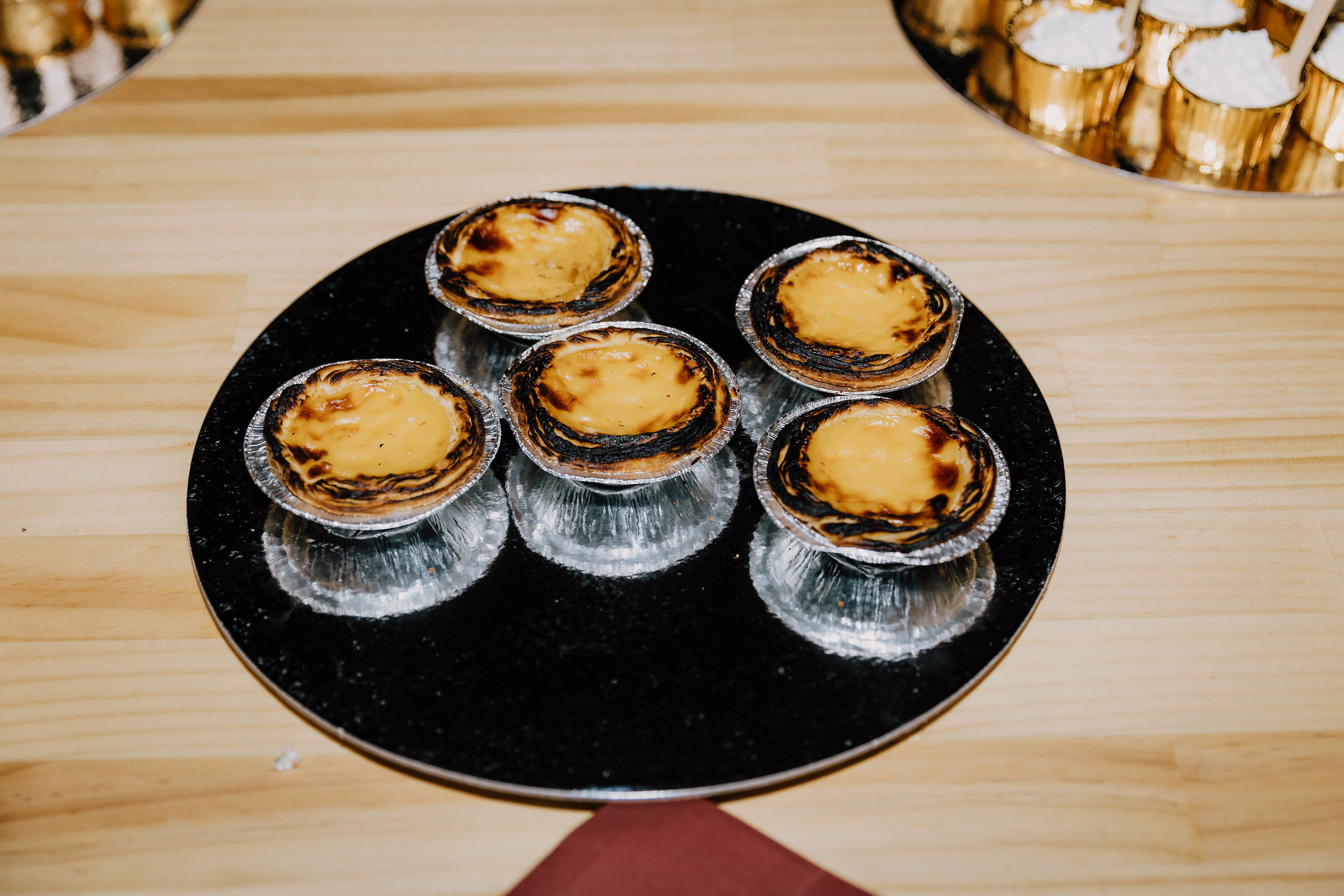 For sit-down mains, we pre-set up the tables with plates & cutlery as well as food stands. The dishes are then placed at the centre of the tables, creating a shared dining experience similar to a family feast. This setup encourages interaction and allows everyone to enjoy a communal meal together.