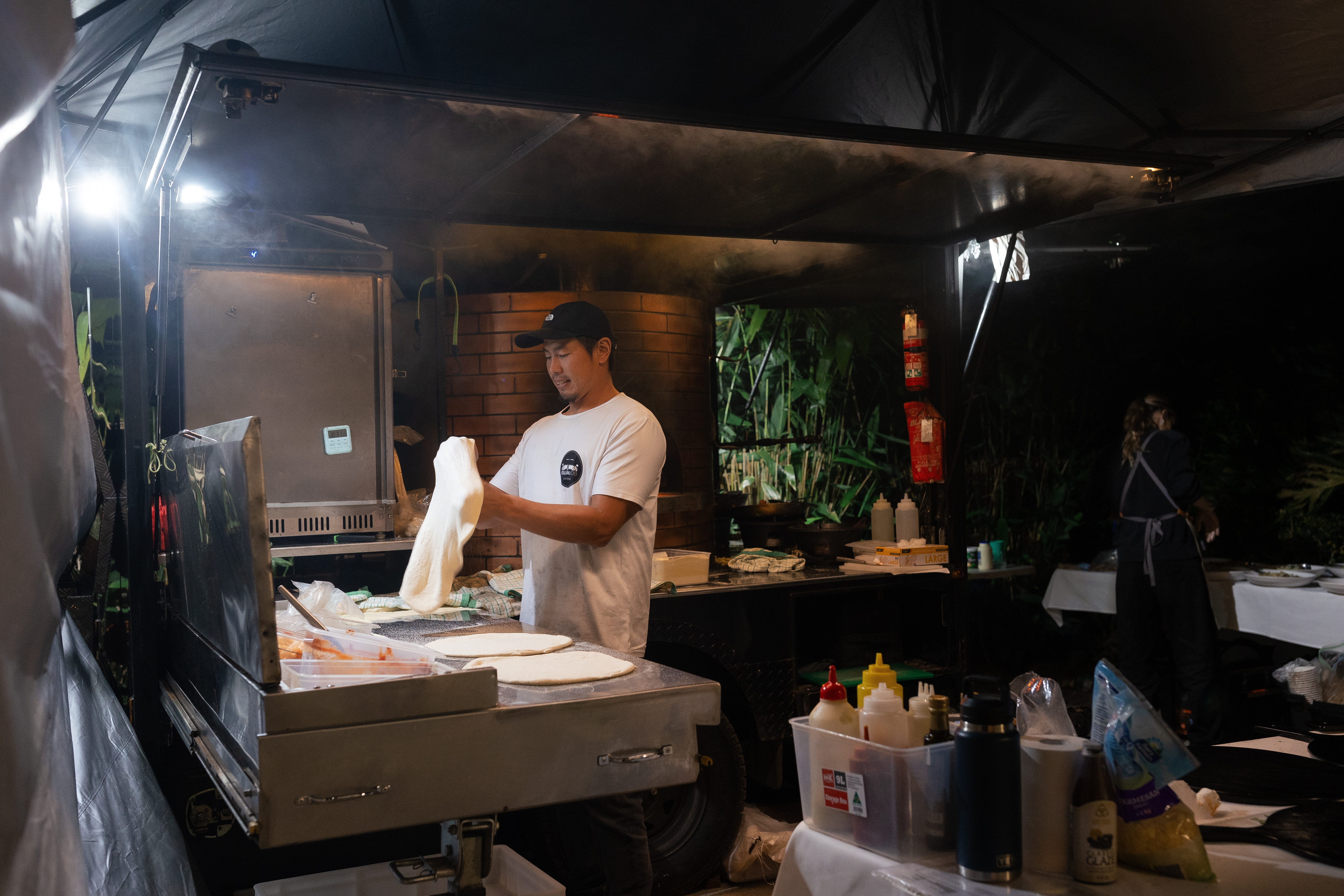 Our food trailer setup is designed for versatility and accessibility as well as our pop up catering set up. All our vehicles are 4WD, allowing us to access anywhere. For our setup, we only require a straightforward 3x3 flat area with easy access and a standard power point to power a small fridge & a light. We come prepared with extensions.