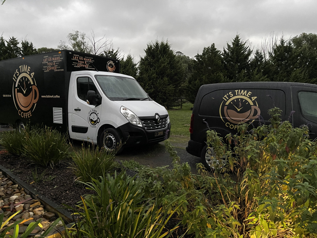 We also have 2 x coffee machines and 2 x grinders and a capacity to carry over 150 litres of milk.
