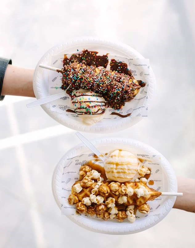 We are the first food truck to bring Wafflepops to Melbourne. They are a Belgian waffles served on a stick and covered and topped with some sweet flavours.