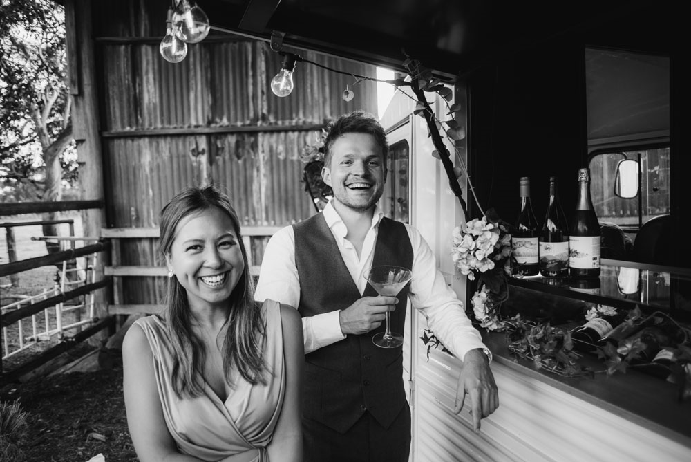 When booking Bernie for a wedding, our base bar package includes: 3 hours service time for up to 100 guests, 2 x RSA qualified bartenders, our beautiful Citroen van Bernie, glassware, liquor licence application (if applicable), personalised drinks menu, generator hire, ice for service, bar equipment and setup and packdown time. There are a number of optional extras that can be added to this, such as: additional service time, cocktails, coffees and additional staff.
