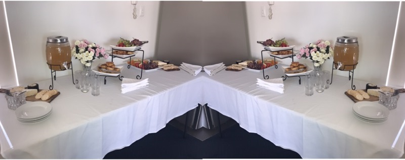 We will come to where you will be getting ready for the day and set a small table of finger foods along with some drinks. We also provide Glasses, table clothes, linen napkins, hand wipes and any other utensils that maybe required.