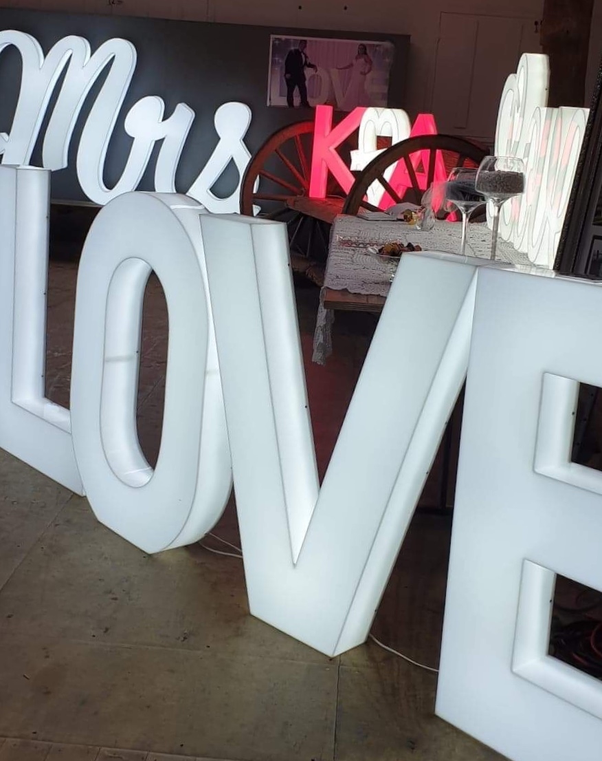 Why not light up your reception with a brightly lit LOVE sign, looks stunning in front of your wedding table and is an awsome back drop for your first dance with your LOVE as husband and wife. Light up an outdoor garden for photos under the moonlight with LOVE glisting in the back ground.