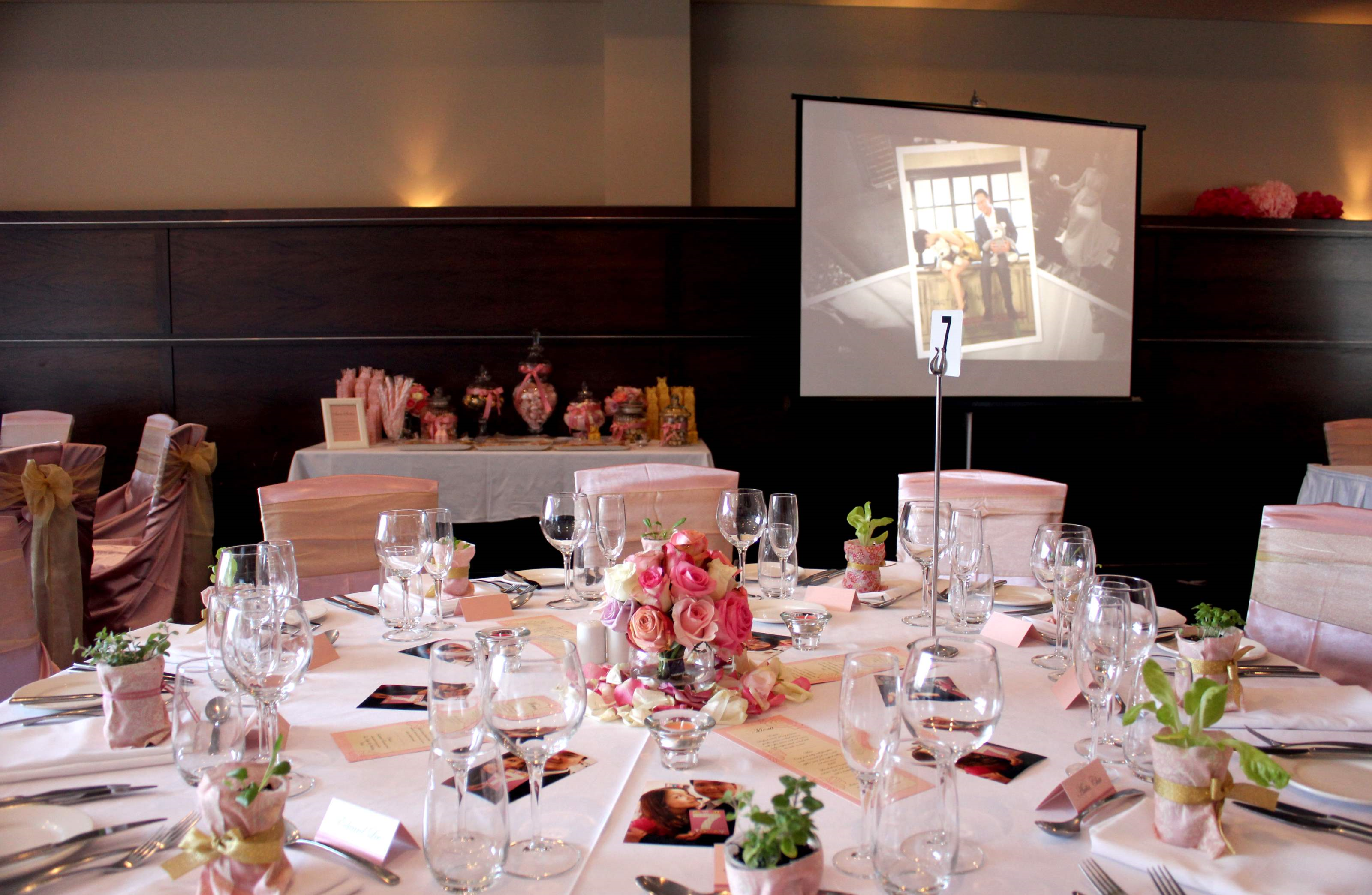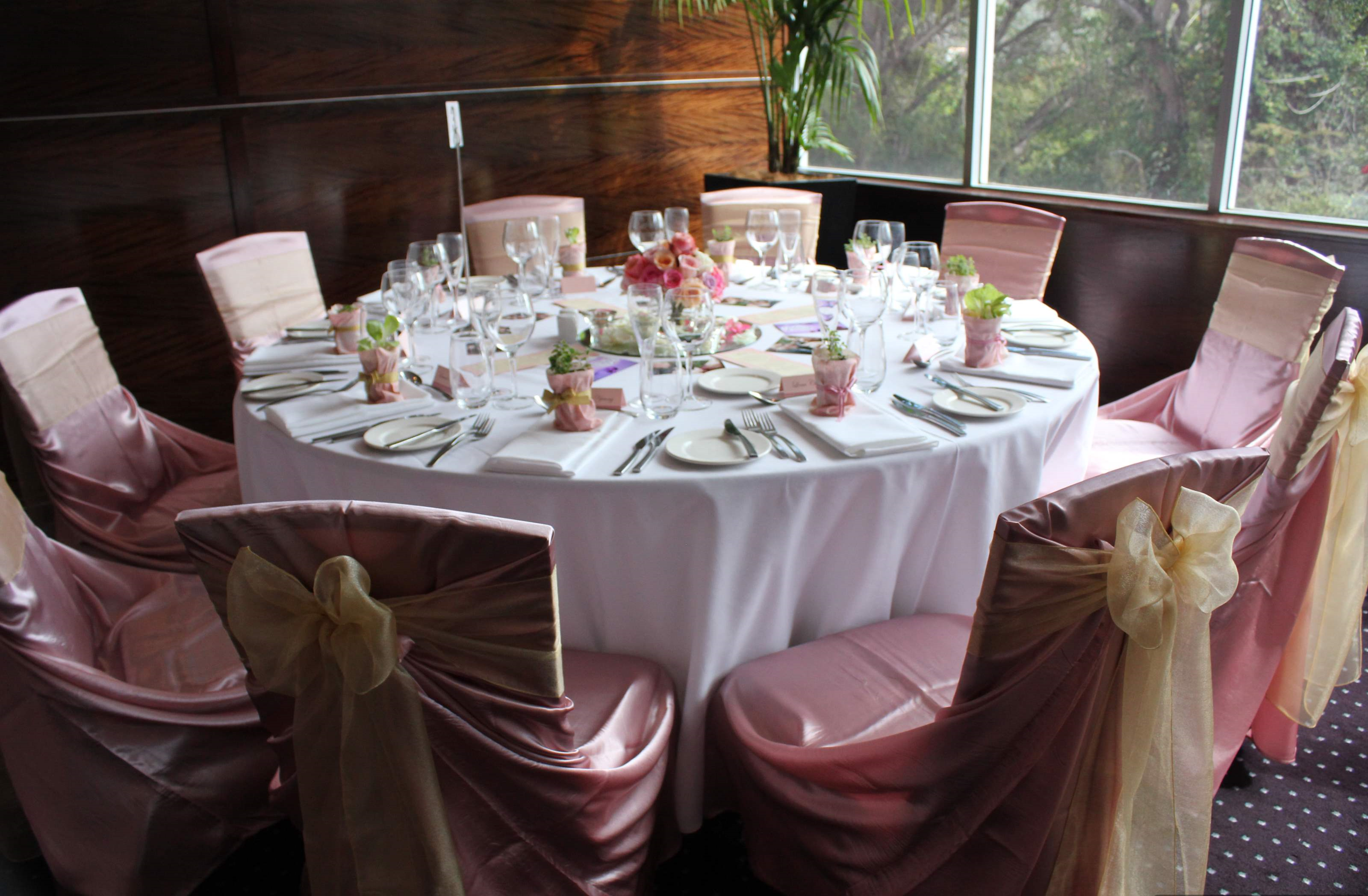 I found the easiest way to decorate in these situations is to focus on the colour scheme of your wedding, with simple flower arrangements at the centre of the table. Also concentrate your decorating effort at the bridal table as that's where your guests will be looking at most of the time. You can even have a sign in table with Polaroid cameras and a few props so your guests can take photos and pop them in your guest books. Hope this helps.