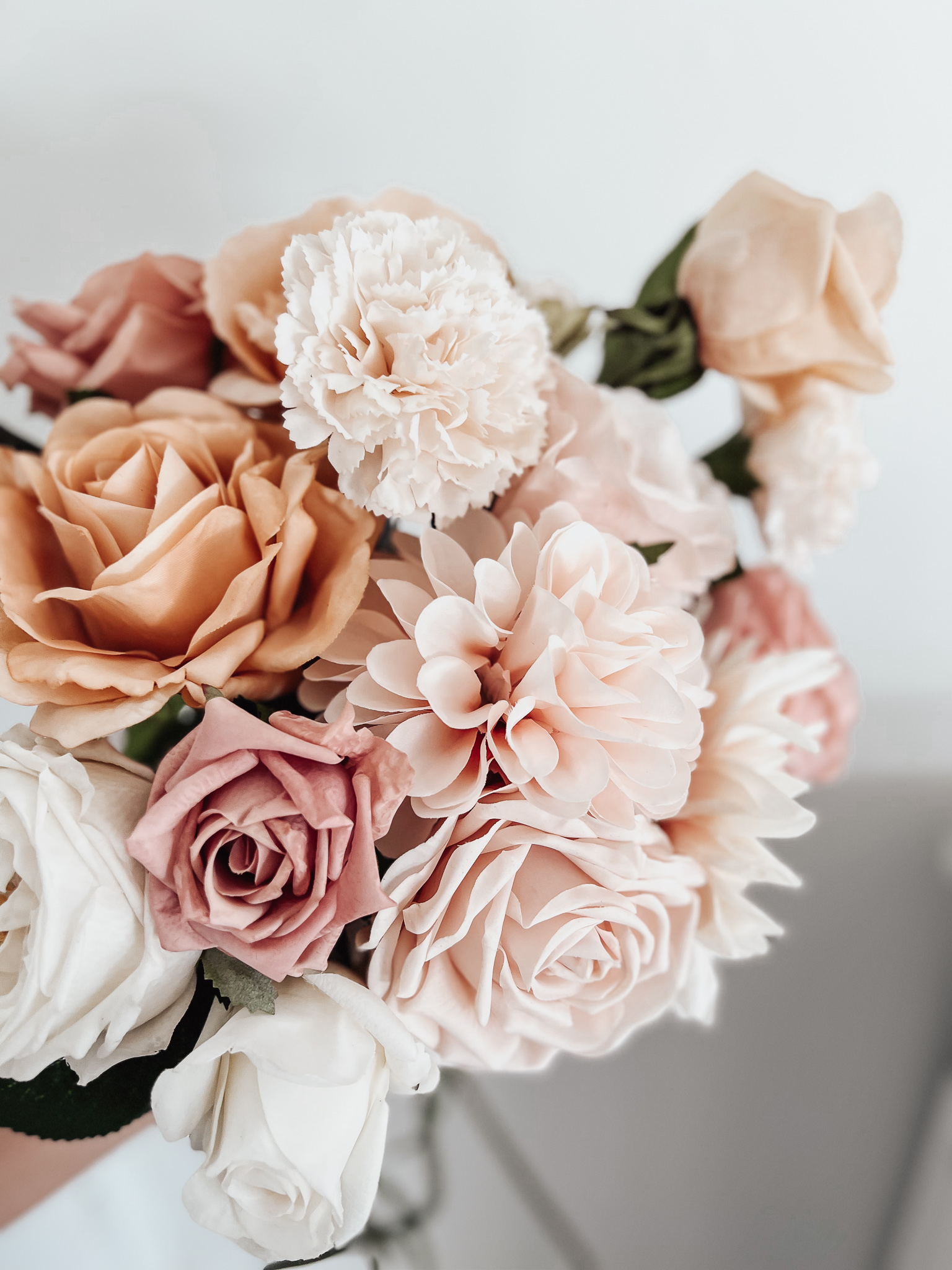 We recommend keeping your bouquet in a clean, dry and dust free environment. If purchasing in advance it is a good idea to cover them with a clean plastic cover to keep the petals clean.