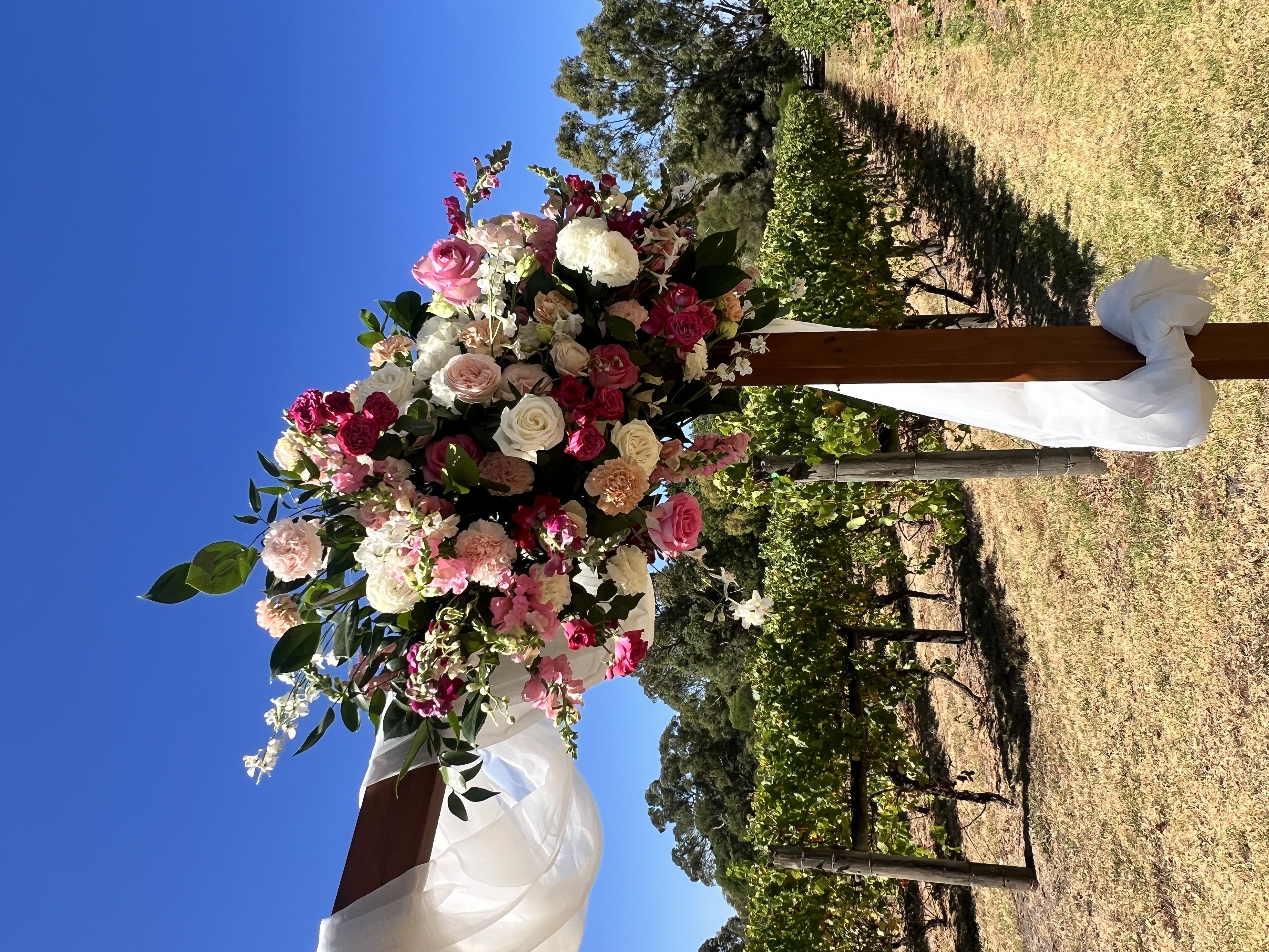 "The flowers were absolutely beautiful. We could not have been happier with all the arrangements, they were stunning. We ended up indoors re the rain and the flowers were placed beautifully. Thank you so so much for everything." - Suzanne & Mark