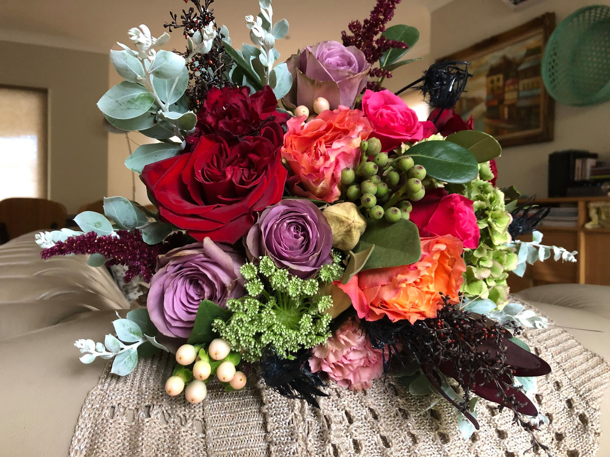 I commenced working with my mother at age 8. She had an enviable reputation as a dried flower artist and we travelled to Sydney from the Mid North Coast to distribute her work. From there I started a sub business and sold creations using gum nuts and driftwood.