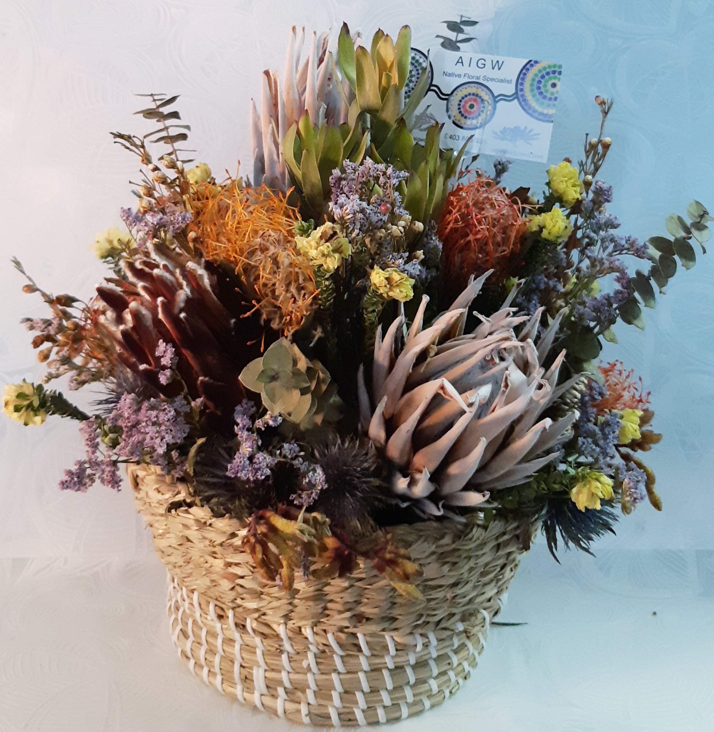 AIGW: We create native floral arrangements for weddings, functions, corporate events and funerals, and also supply a wide range of gift boxes, bouquets and wreaths. As well as special occasions, such as Valentine’s Day, Anzac Day or Mothers Day.
