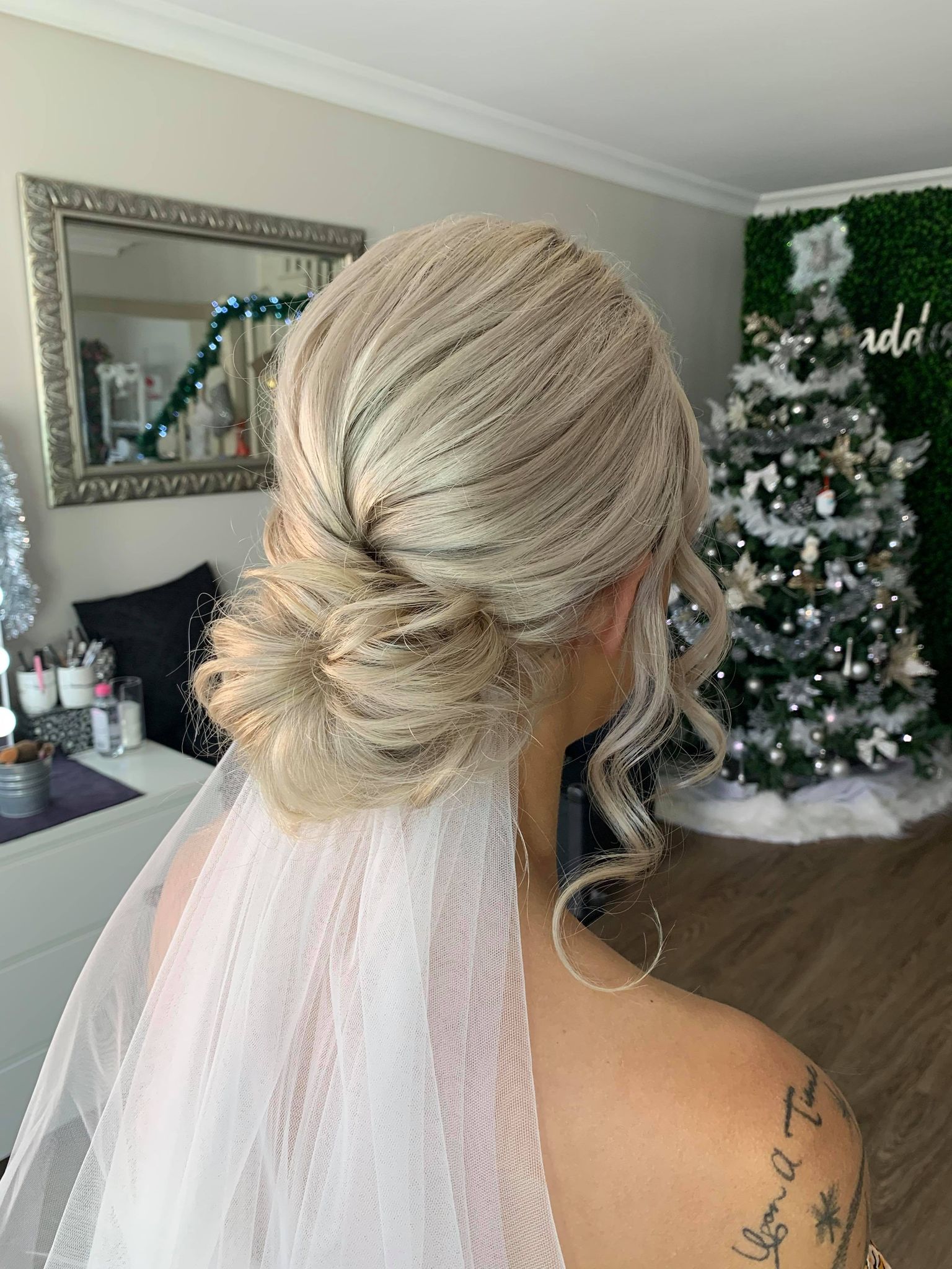 At the trial we will spend time with you creating a style that you love ,please bring your veil or accessories that you would like to use . We will take photos of the finished look& bring them along on your wedding day