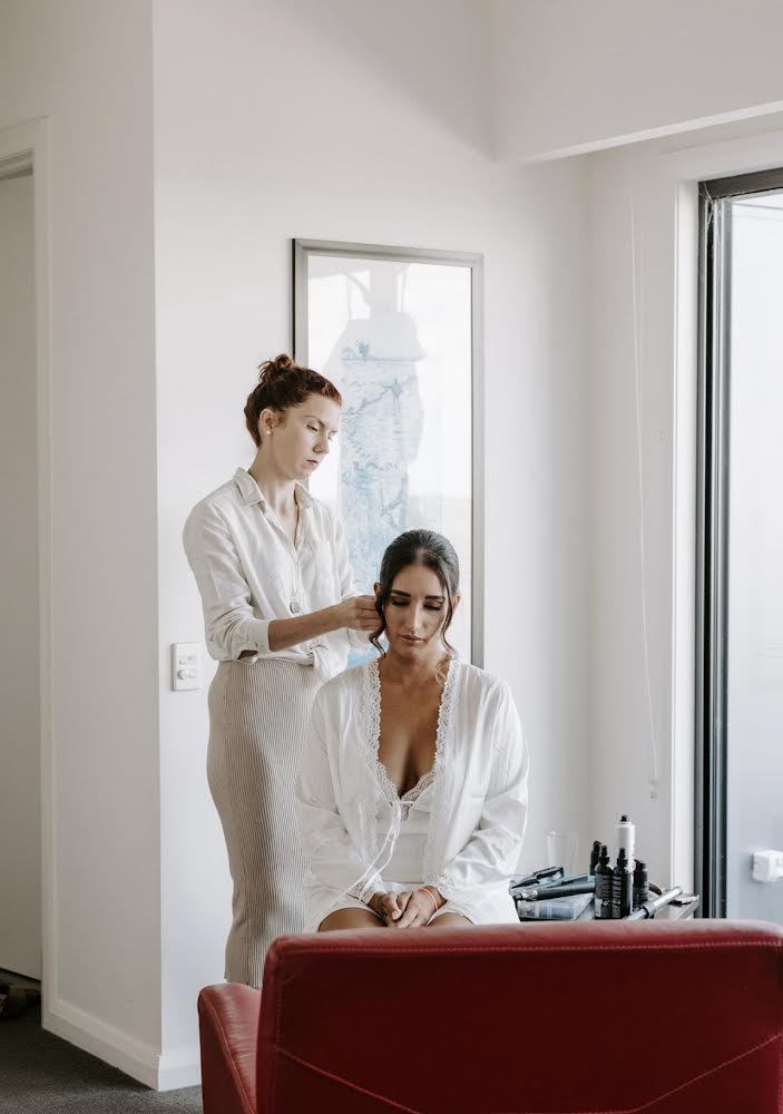 You & your bridal party will be kindly requested to shampoo, condition & Blowdry your hair with no added product/or straightening, the evening before your wedding day. This gives the stylist a fresh blank canvas to prep with any products/ tools they need to tame and control the hair without the concern of oily roots or product build-up, resulting in dreamy light, volumious hairstyles.