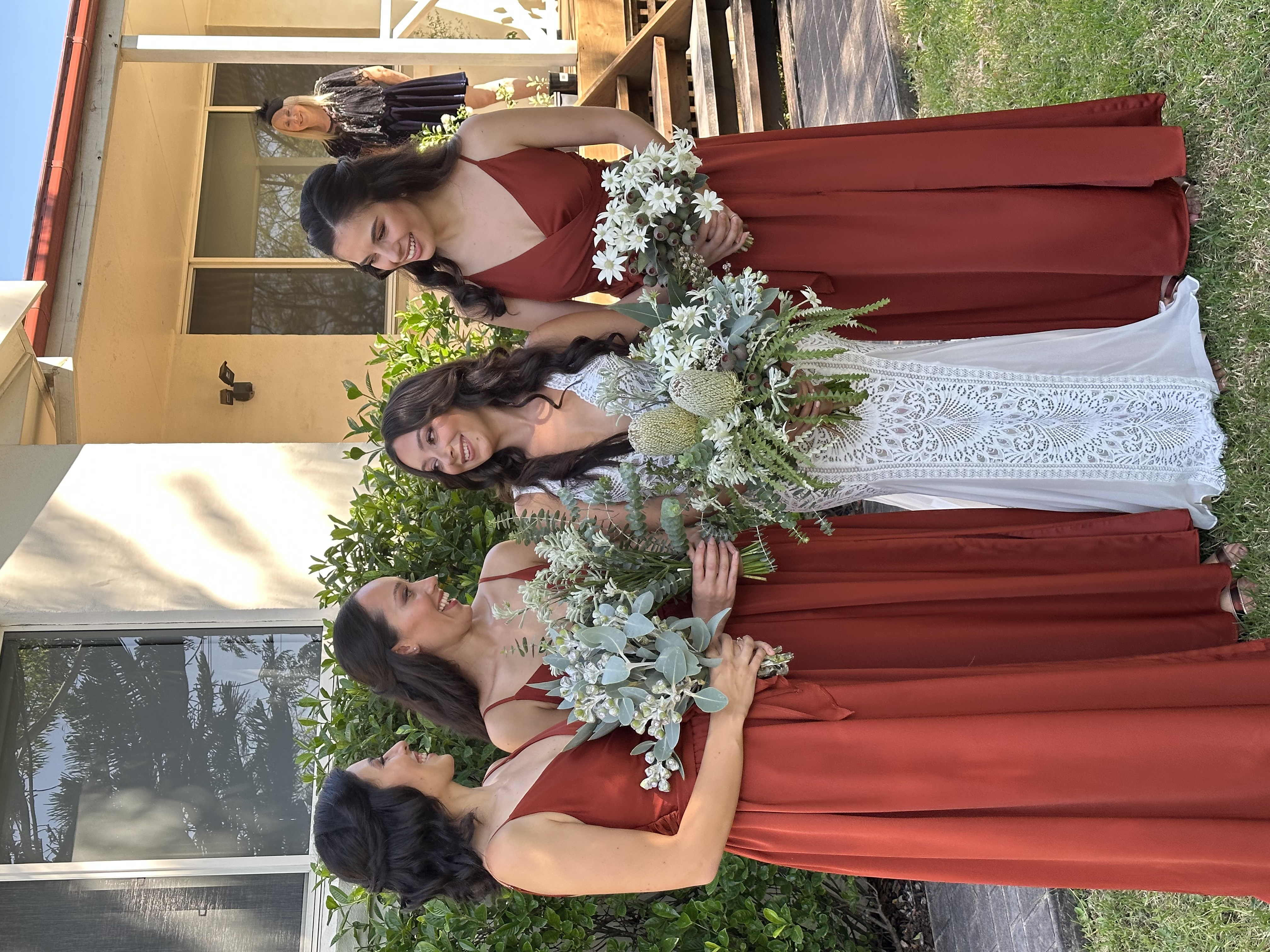 “I can’t recommend Nicole highly enough. She really took the time before the wedding to find out exactly what I wanted, and on the wedding day, I trusted her 100% to look after me, my three bridesmaids, and two guests. She did an amazing job with our hair and was clearly very experienced — she was able to work flexibly around the chaos, staying relaxed, making us feel calm, and even giving helpful tips on timings and photo opportunities. Don’t know what I would have done without her!” — Maria.