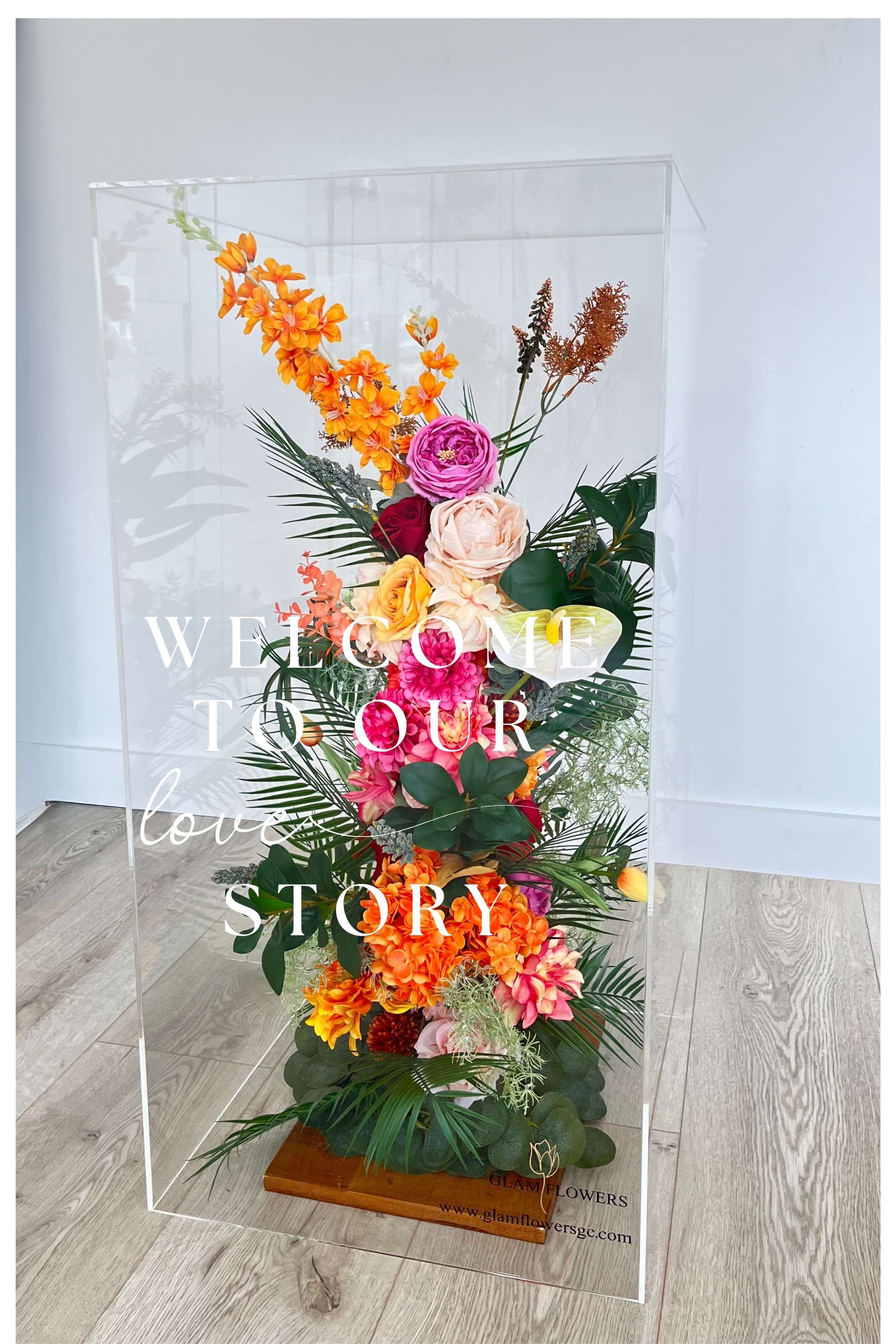 At Glam Flowers, we pride ourselves on quality craftsmanship. Our curated selection of on-trend artificial floral items and bespoke decor is crafted to the highest standards, ensuring a lasting impression on your guests. Collaborate with us to customise flower walls and signs that uniquely reflect your style and event theme. With Glam Flowers, your vision becomes a reality.
