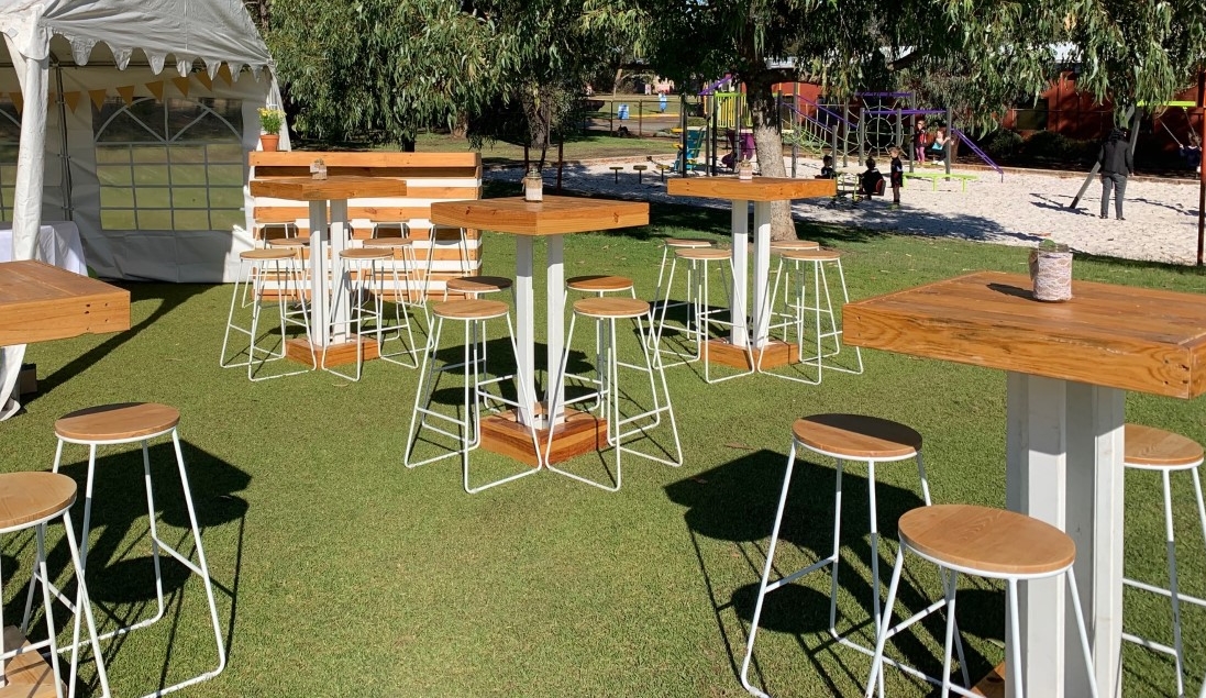 Our range includes bar tables and stools, cafe tables and stools, bench seats, coffee tables, 3.6m or 1.8m bar….. and the collection is growing!