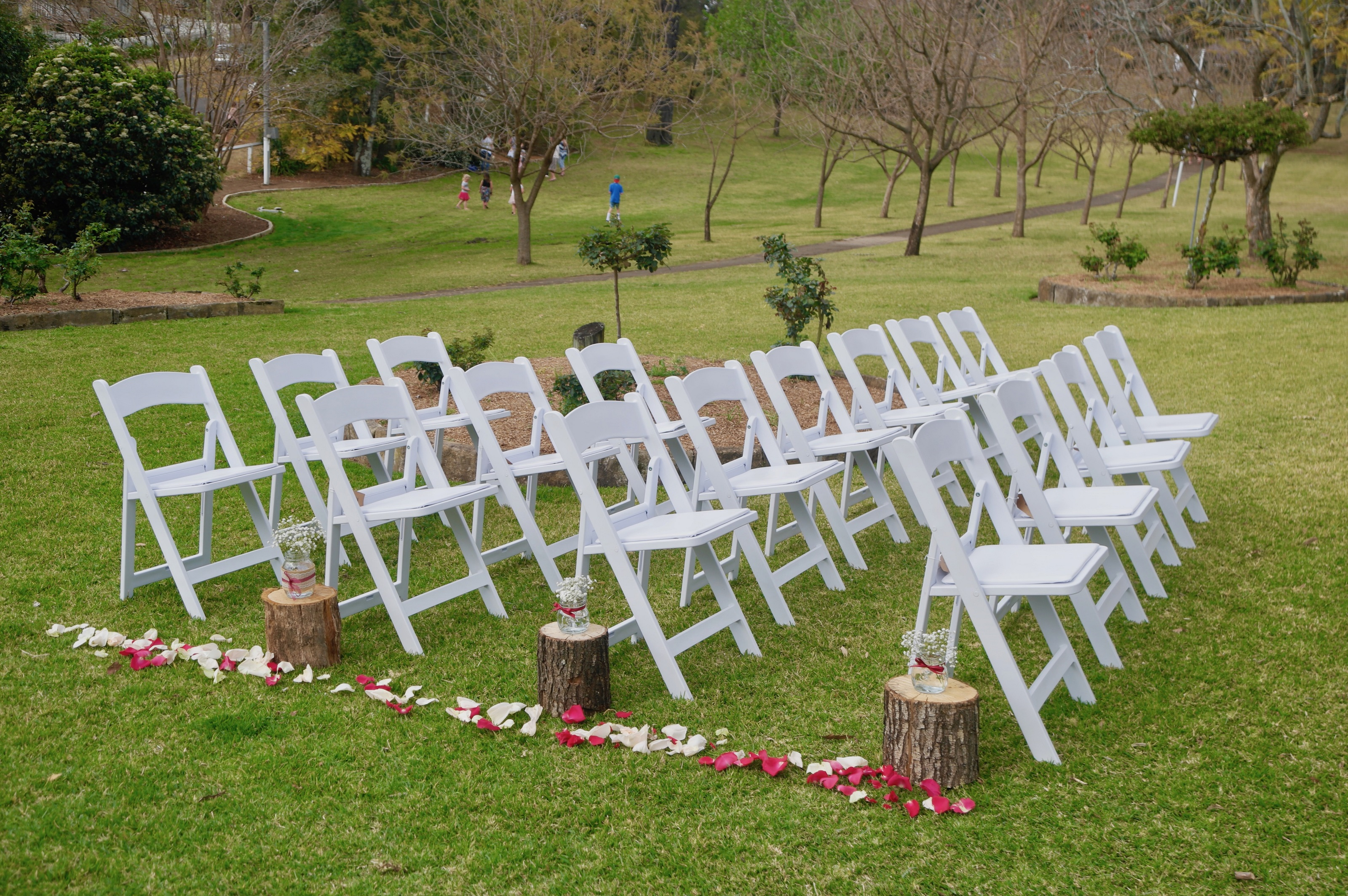 Generally it is much easier to enlist the help of a wedding hire company for chairs, arches, signing tables etc. Depending on the company and your wishes, they will deliver, set up and then remove the items. Some public areas have their own gazebos, which have been known to be preferable spots for the bride and groom to get married. Alternatively, an arch would do the trick.