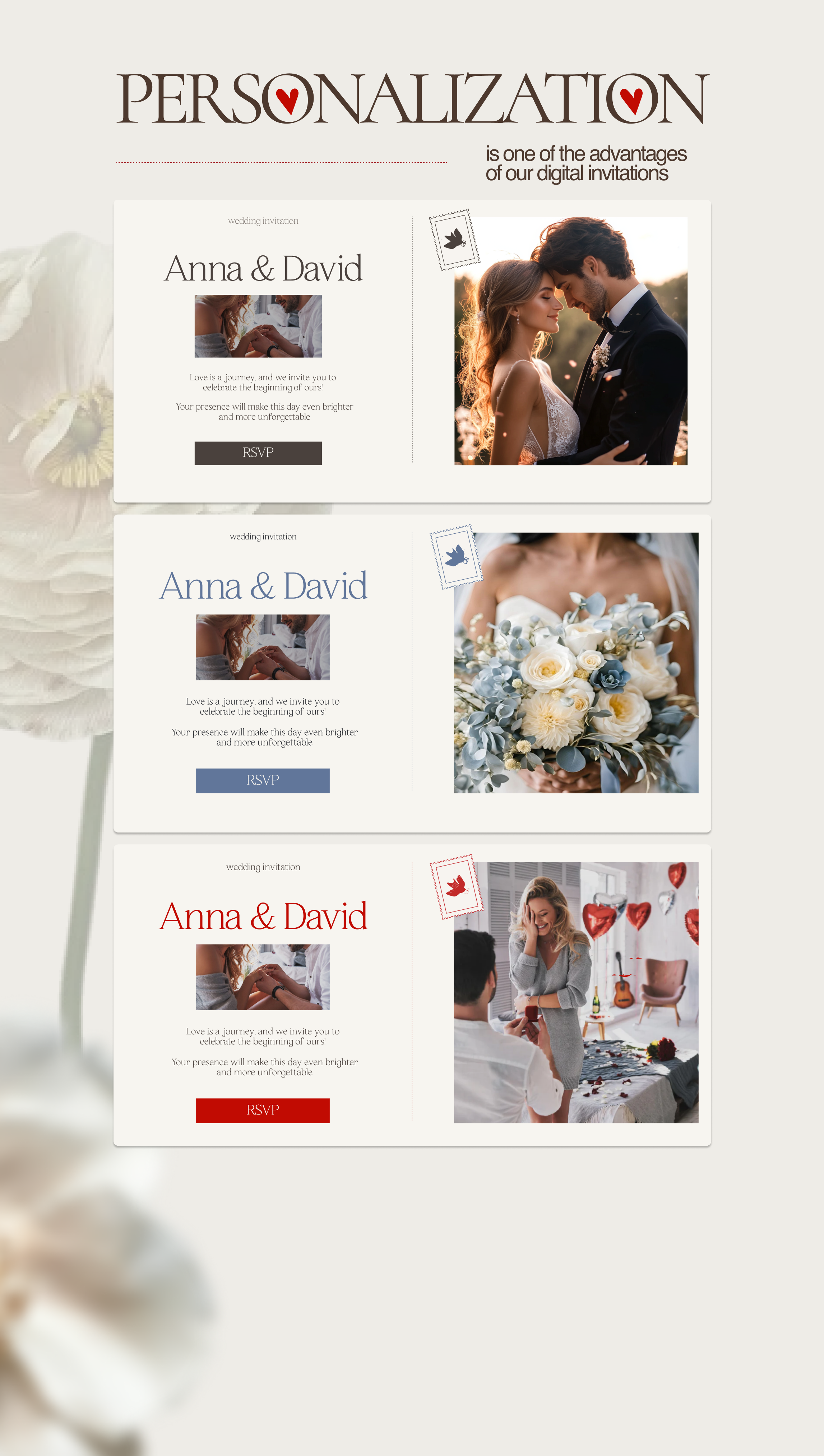 Digital invitations are also quicker to produce, more cost-effective, and kinder to the environment — making them a practical yet stylish option for couples who want something fresh and convenient.