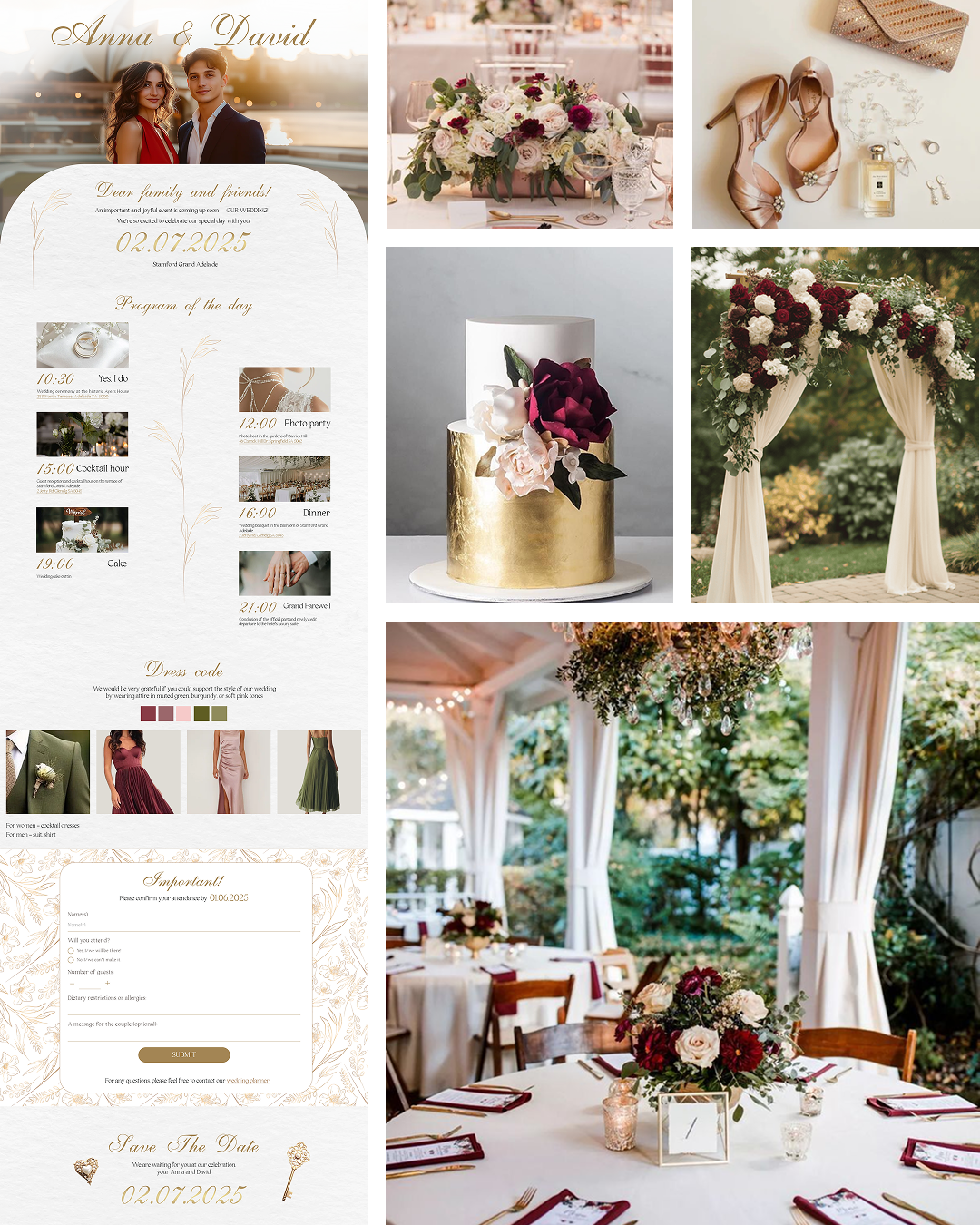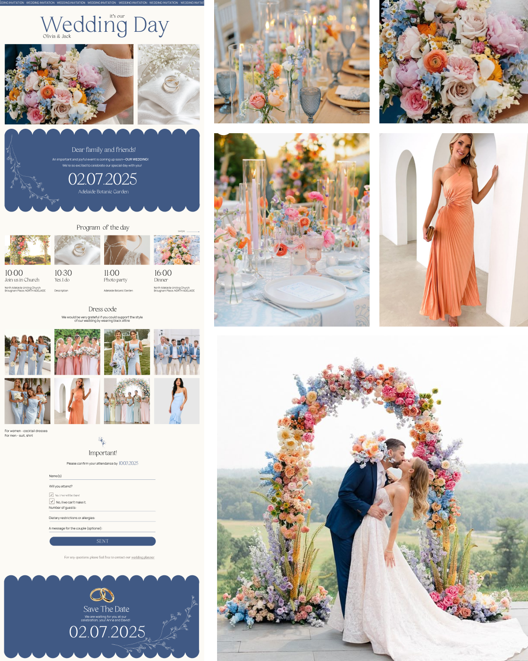Every wedding website includes all the crucial details guests need—venue info, dress code, schedule, and even the gift registry—all in one place. The built-in RSVP system automatically tracks responses, saving time and keeping things organised. With a fast 2–4 day turnaround, couples can skip the waiting time that comes with traditional wedding stationery. Plus, as a 100% digital solution, it’s an eco-friendly way to send invitations without waste.