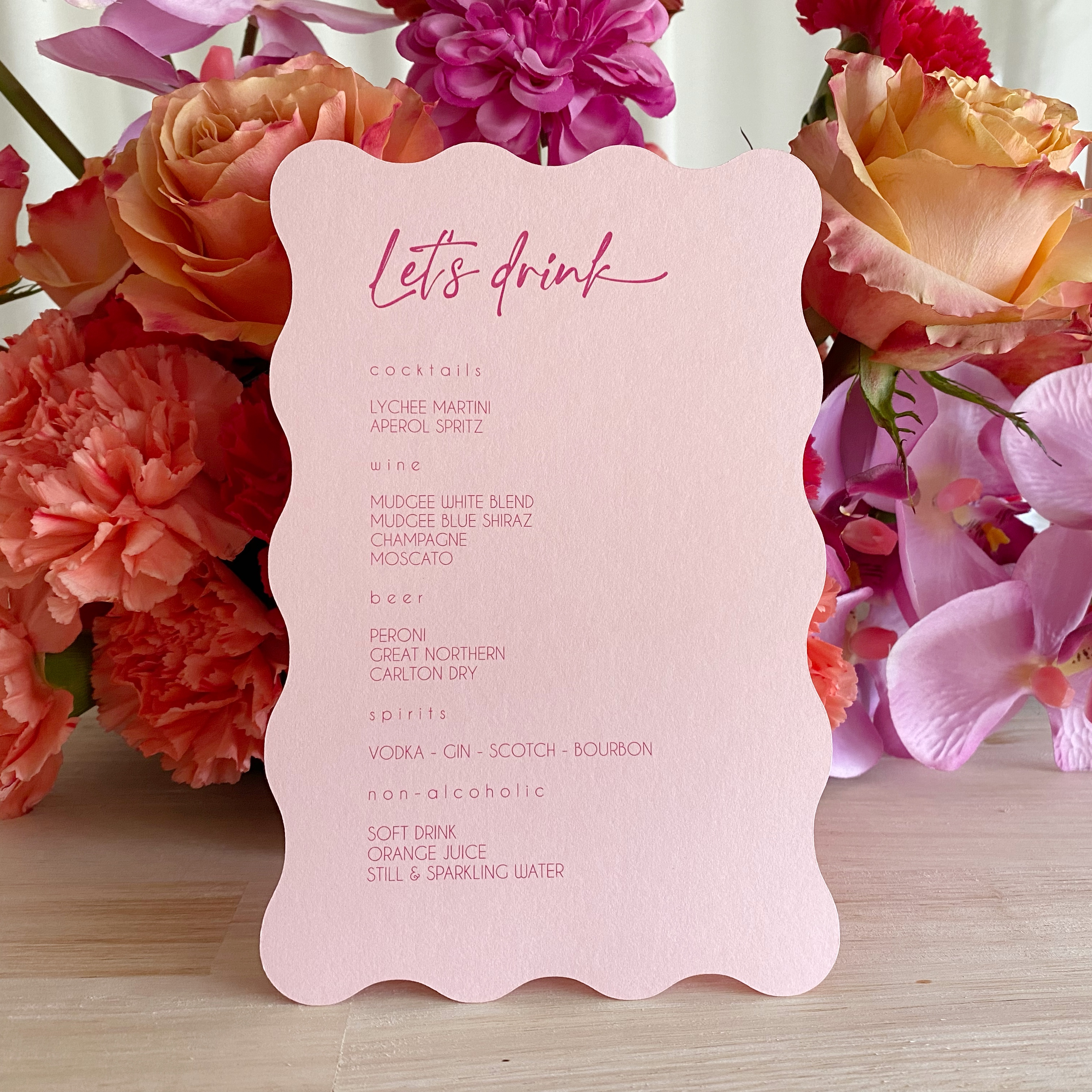 For Seating Charts and Wedding Favours, we require guest lists and seating plans a minimum of 4 weeks prior to your event date to ensure we can make and ship it to you in time.