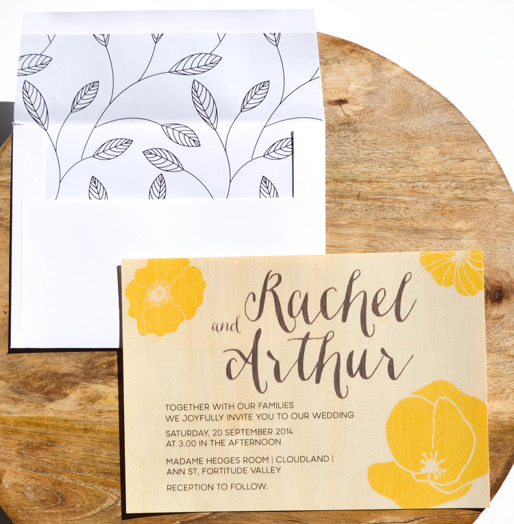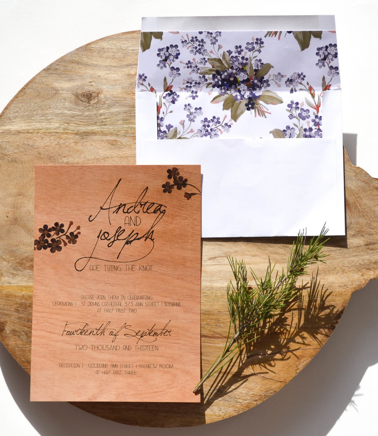 • Thinly sliced pieces of real timber (yes, real wood wedding invitations!)
