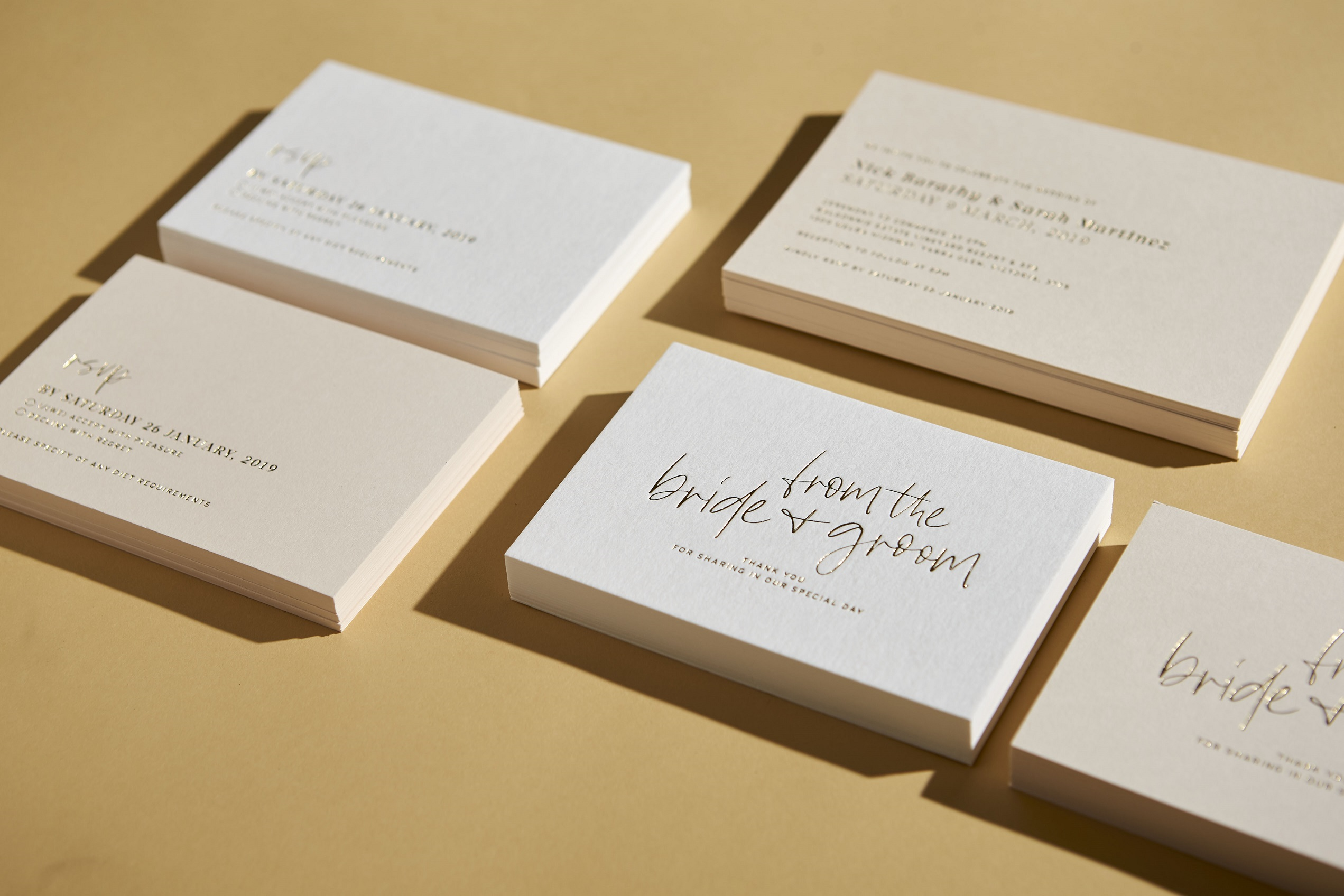 We recommend organising your suite a minimum of 2-3 months prior to the date (dependent on print method chosen), from which you plan to delivery your suite to your guests.