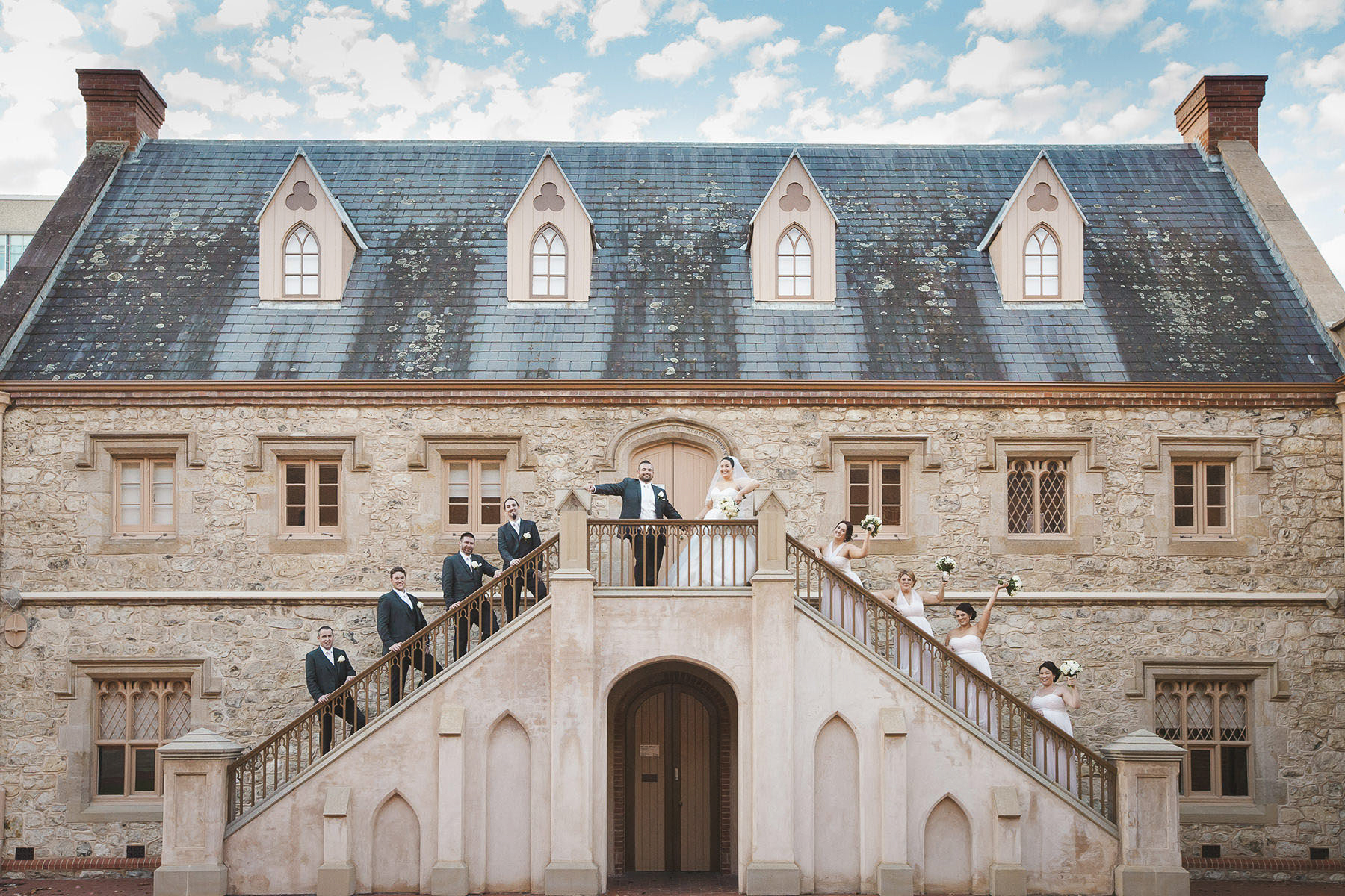 I give a little guidance with posing for the bride and groom and the bridal party. My aim is to create a fun and natural experience for everyone involved. My main goal is to capture the love between the bride and groom and the connections they have with their bridal party.