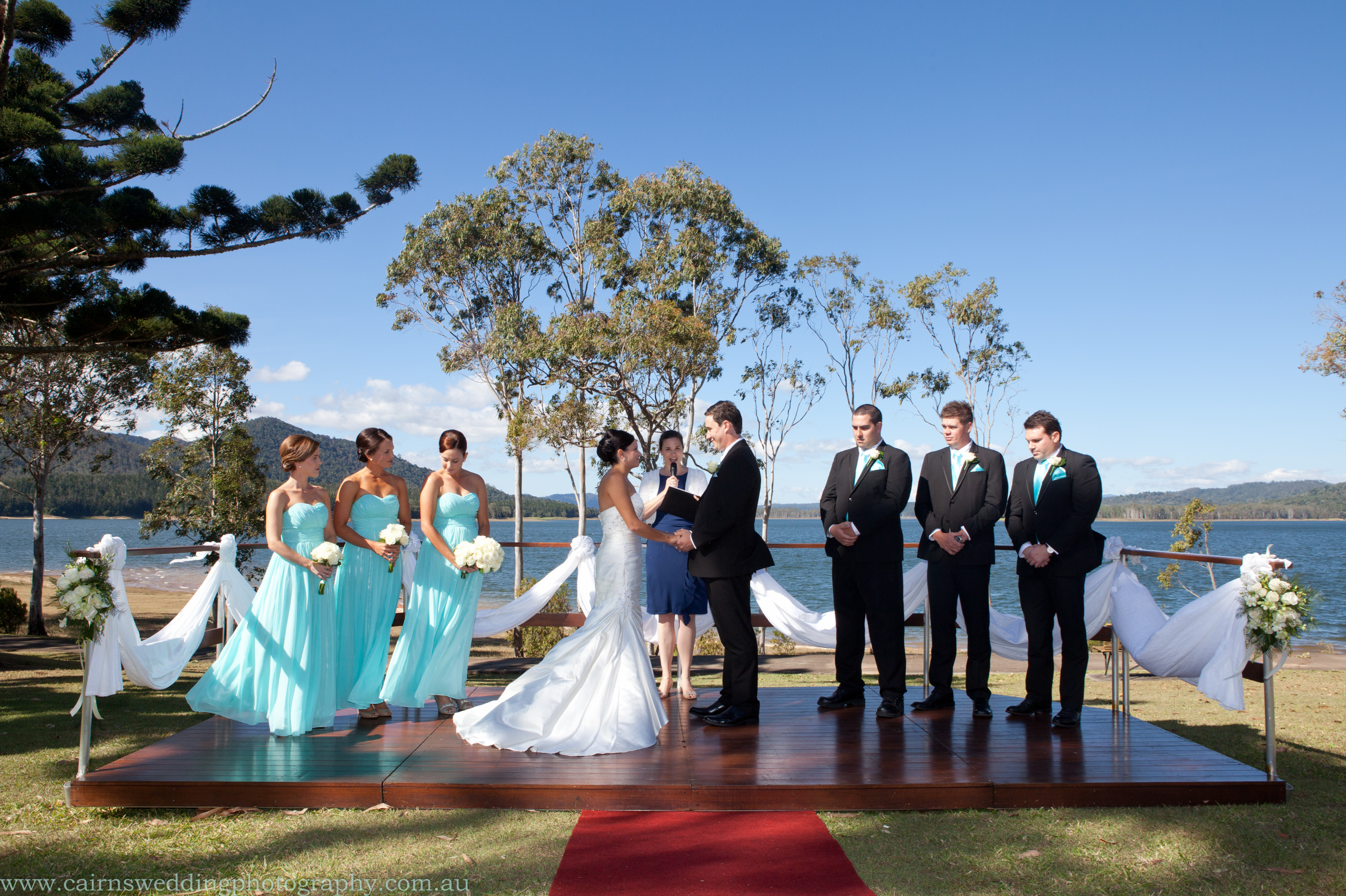 Hi Jessika Thanks for your review....Lake Tinaroo Resort is just an absolutely stunning place to get married and you all looked great especially the bridesmaids in individually coloured dresses and I loved your Blue shiny runners under the dress.....