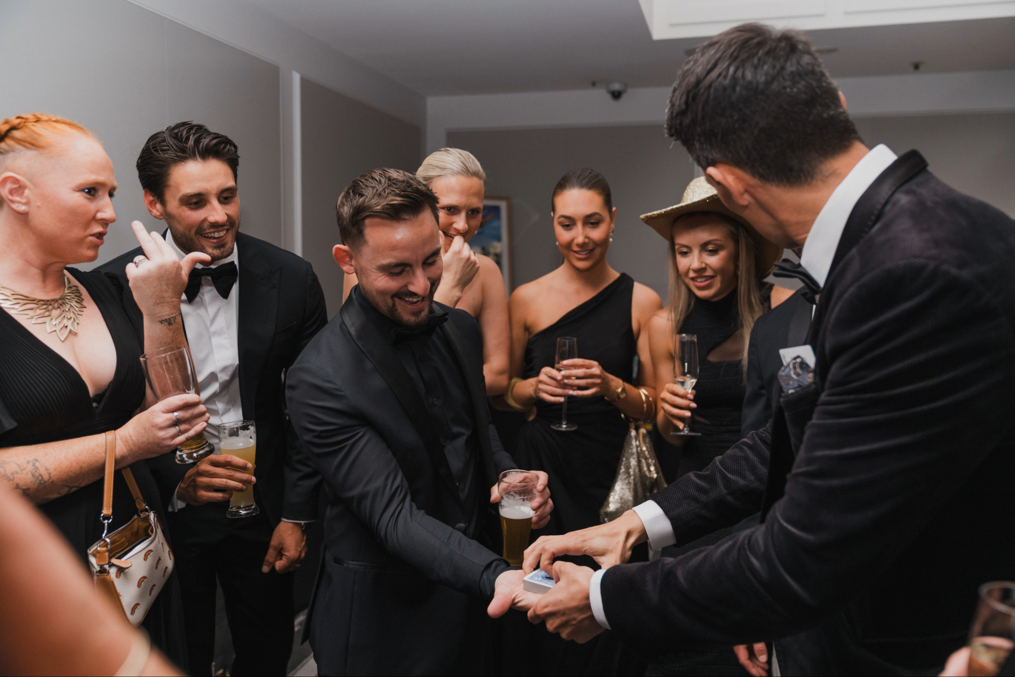 I specialise in interactive magic that happens right in your guests’ hands - during cocktail hour, between courses or while photos are being taken. My style is fun, engaging and entertaining; designed to bring guests together, spark conversation and keep the energy flowing throughout your day.