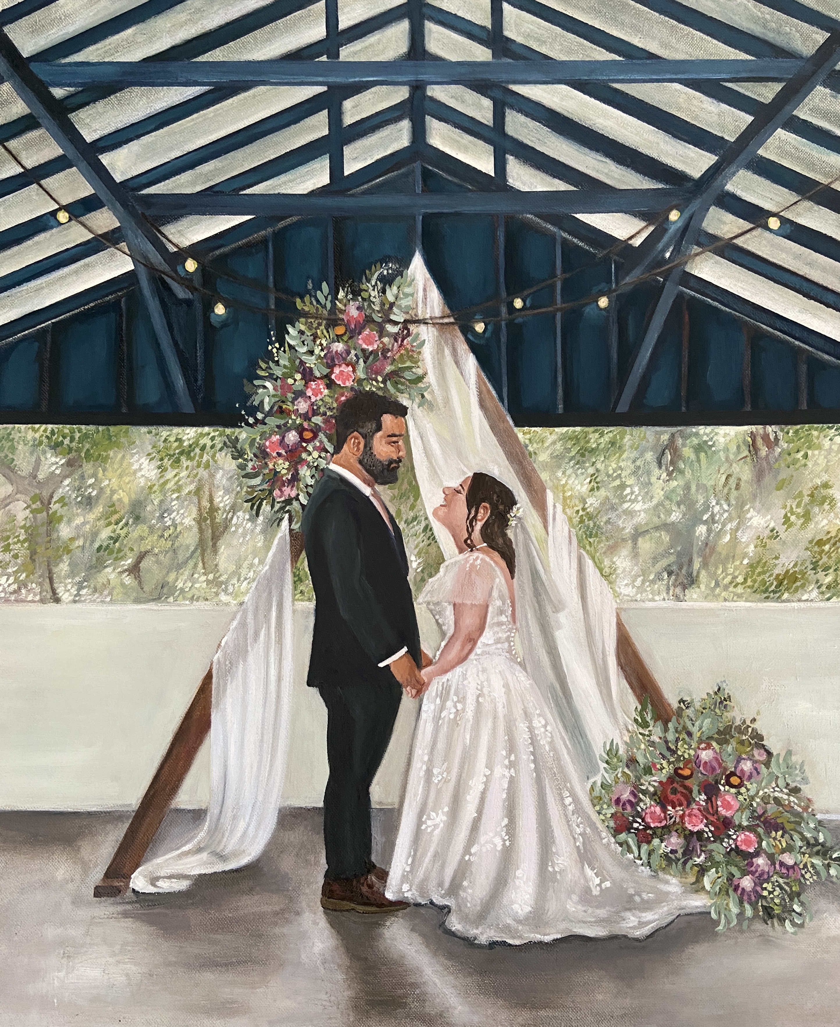 I have loved painting and drawing for as long as I can remember. It has always been a big and joyful part of my life. Alongside my art life I have completed studies and practiced in Industrial Design, travelled and exhibited internationally. Specialising in figurative painting and portraiture, my art work lends itself to capturing people in precious moments. A wedding painting is the perfect time to have precious memories immortalised in paint.